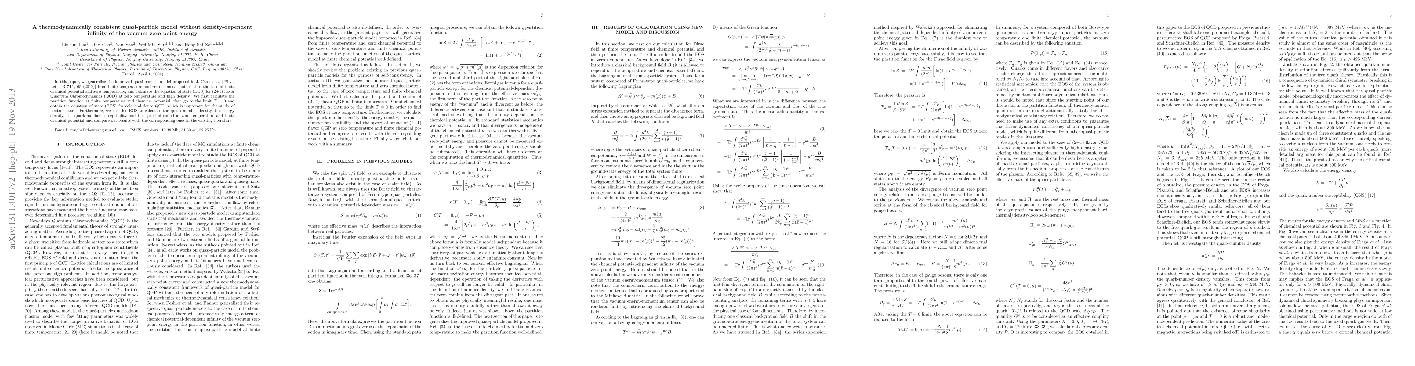 In this paper, we generalize the improved quasi-particle model proposed in J. Cao et al., [ Phys. Lett. B {\bf711}, 65 (2012)] from finite temperature and zero chemical potential to the case of finite chemical potential and zero temperature, and calculate the equation of state (EOS) for (2+1) flavor Quantum Chromodynamics (QCD) at zero temperature and high density. We first calculate the partition function at finite temperature and chemical potential, then go to the limit $T=0$ and obtain the equation of state (EOS) for cold and dense QCD, which is important for the study of neutron stars. Furthermore, we use this EOS to calculate the quark-number density, the energy density, the quark-number susceptibility and the speed of sound at zero temperature and finite chemical potential and compare our results with the corresponding ones in the existing literature.