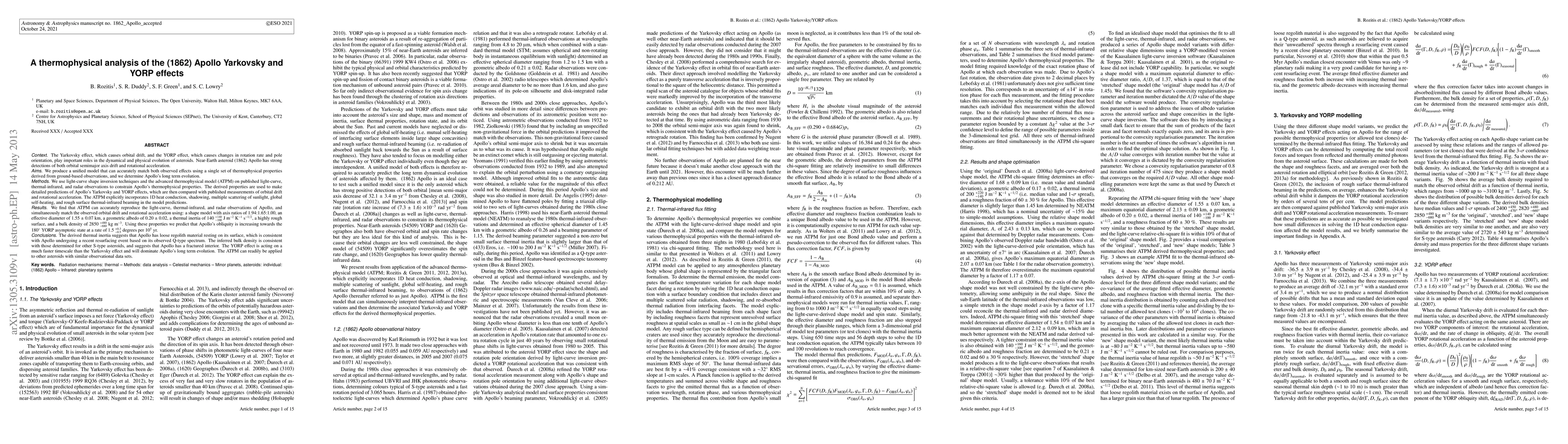 Near-Earth asteroid (1862) Apollo has strong detections of both orbital semimajor axis drift and rotational acceleration. We produce a unified model that can accurately match both observed effects using a single set of thermophysical properties derived from ground-based observations, and we determine Apollo's long term evolution. We use light-curve shape inversion techniques and the ATPM on published light-curve, thermal-infrared, and radar observations to constrain Apollo's thermophysical properties. The derived properties are used to make detailed predictions of Apollo's Yarkovsky and YORP effects, which are then compared with published measurements of orbital drift and rotational acceleration. The ATPM explicitly incorporates 1D heat conduction, shadowing, multiple scattering of sunlight, global self-heating, and rough surface thermal-infrared beaming in the model predictions. We find that ATPM can accurately reproduce the light-curve, thermal-infrared, and radar observations of Apollo, and simultaneously match the observed orbital drift and rotational acceleration using: a shape model with axis ratios of 1.94:1.65:1.00, an effective diameter of 1.55 +/- 0.07 km, a geometric albedo of 0.20 +/- 0.02, a thermal inertia of 140 +140/-100 J m-2 K-1 s-1/2, a highly rough surface, and a bulk density of 2850 +480/-680 kg m-3. Using these properties we predict that Apollo's obliquity is increasing towards the 180 degree YORP asymptotic state at a rate of 1.5 +0.3/-0.5 degrees per 10^5 yr. The derived thermal inertia suggests that Apollo has loose regolith material resting on its surface, which is consistent with Apollo undergoing a recent resurfacing event based on its observed Q-type spectrum. The inferred bulk density is consistent with those determined for other S-type asteroids, and suggests that Apollo has a fractured interior.