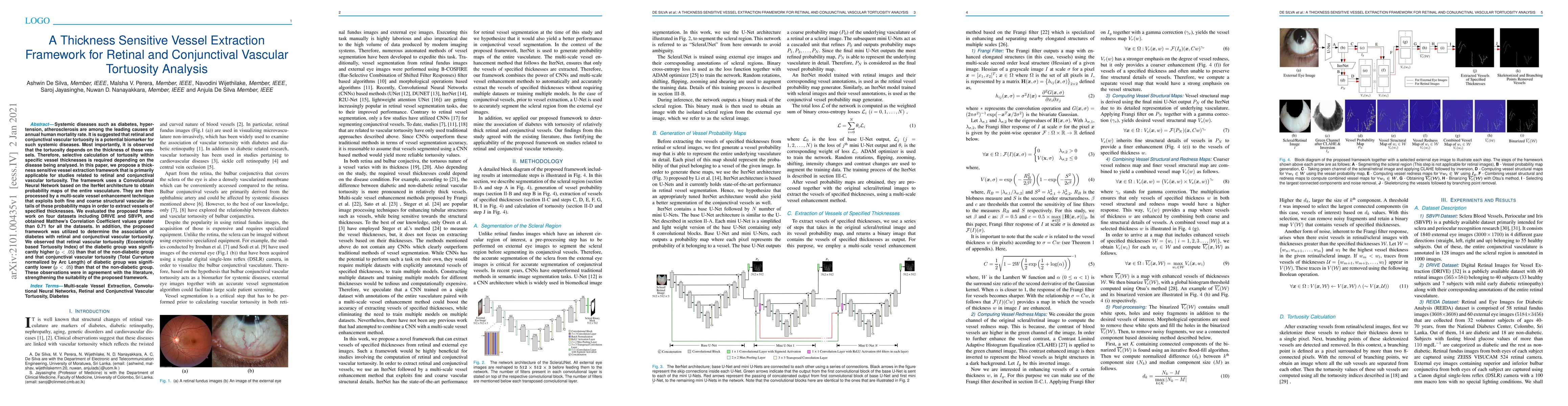 Systemic diseases such as diabetes, hypertension, atherosclerosis are among the leading causes of annual human mortality rate. It is suggested that retinal and conjunctival vascular tortuosity is a potential biomarker for such systemic diseases. Most importantly, it is observed that the tortuosity depends on the thickness of these vessels. Therefore, selective calculation of tortuosity within specific vessel thicknesses is required depending on the disease being analysed. In this paper, we propose a thickness sensitive vessel extraction framework that is primarily applicable for studies related to retinal and conjunctival vascular tortuosity. The framework uses a Convolutional Neural Network based on the IterNet architecture to obtain probability maps of the entire vasculature. They are then processed by a multi-scale vessel enhancement technique that exploits both fine and coarse structural vascular details of these probability maps in order to extract vessels of specified thicknesses. We evaluated the proposed framework on four datasets including DRIVE and SBVPI, and obtained Matthew's Correlation Coefficient values greater than 0.71 for all the datasets. In addition, the proposed framework was utilized to determine the association of diabetes with retinal and conjunctival vascular tortuosity. We observed that retinal vascular tortuosity (Eccentricity based Tortuosity Index) of the diabetic group was significantly higher (p < .05) than that of the non-diabetic group and that conjunctival vascular tortuosity (Total Curvature normalized by Arc Length) of diabetic group was significantly lower (p < .05) than that of the non-diabetic group. These observations were in agreement with the literature, strengthening the suitability of the proposed framework.