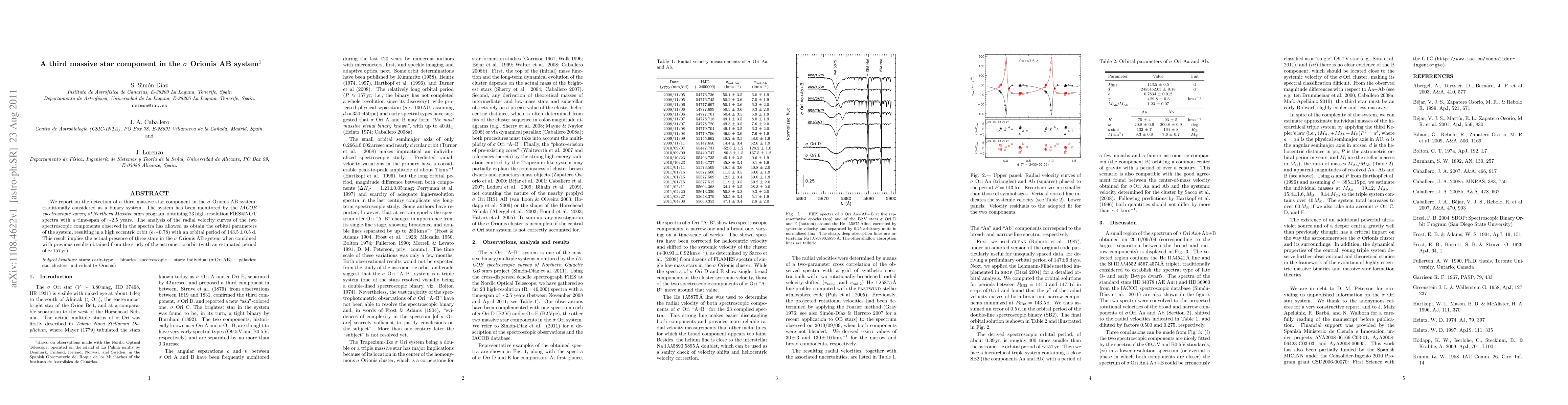 The discovery of a third massive star component in the traditionally binary \sigma Orionis AB system has been confirmed through high-resolution spectroscopic monitoring, revealing a high eccentric orbit with a period of 143.5 days. This finding, combined with previous astrometric orbit studies, indicates the system comprises three stars.