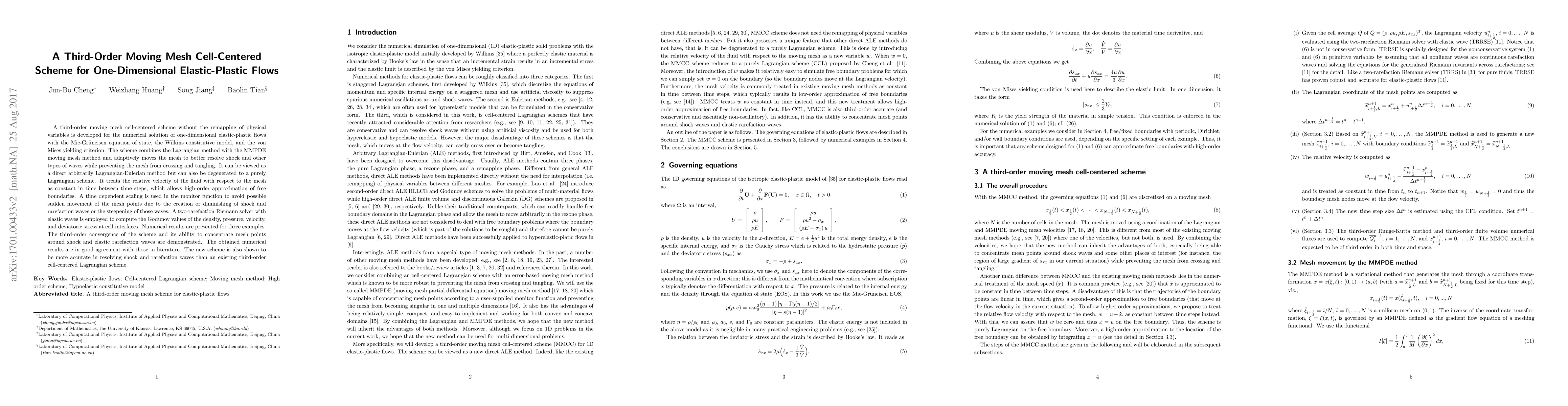 This paper introduces a third-order moving mesh cell-centered scheme for one-dimensional elastic-plastic flows, combining Lagrangian and MMPDE methods to adaptively resolve shock and wave phenomena without remapping physical variables. The scheme demonstrates third-order convergence and superior accuracy in resolving shock and rarefaction waves compared to existing methods.