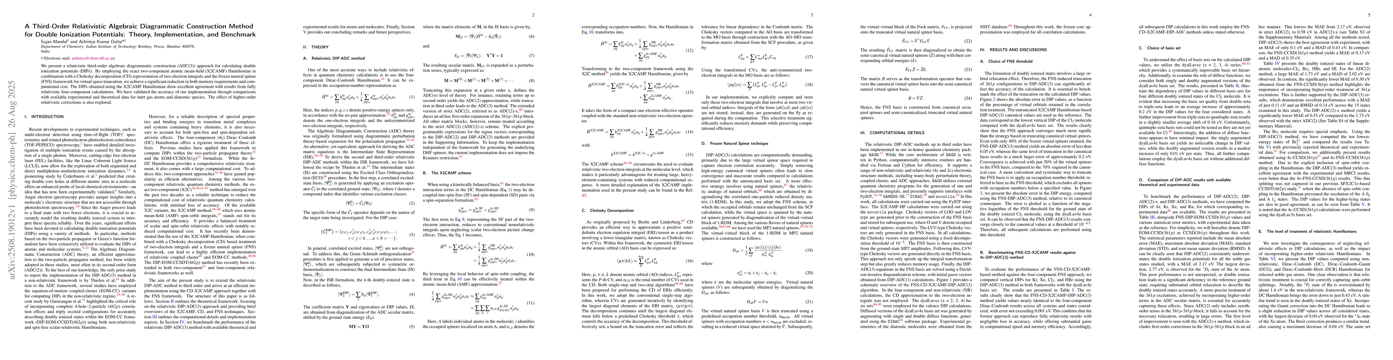 We present a relativistic third-order algebraic diagrammatic construction (ADC(3)) approach for calculating double ionization potentials (DIPs). By employing the exact two-component atomic mean-field (X2CAMF) Hamiltonian in combination with a Cholesky decomposition (CD) representation of two-electron integrals and the frozen natural spinor (FNS) framework for virtual space truncation, we achieve a significant reduction in both memory requirements and computational cost. The DIPs obtained using the X2CAMF Hamiltonian show excellent agreement with results from fully relativistic four-component calculations. We have validated the accuracy of our implementation through comparisons with available experimental and theoretical data for inert gas atoms and diatomic species. The effect of higher-order relativistic corrections is also explored.