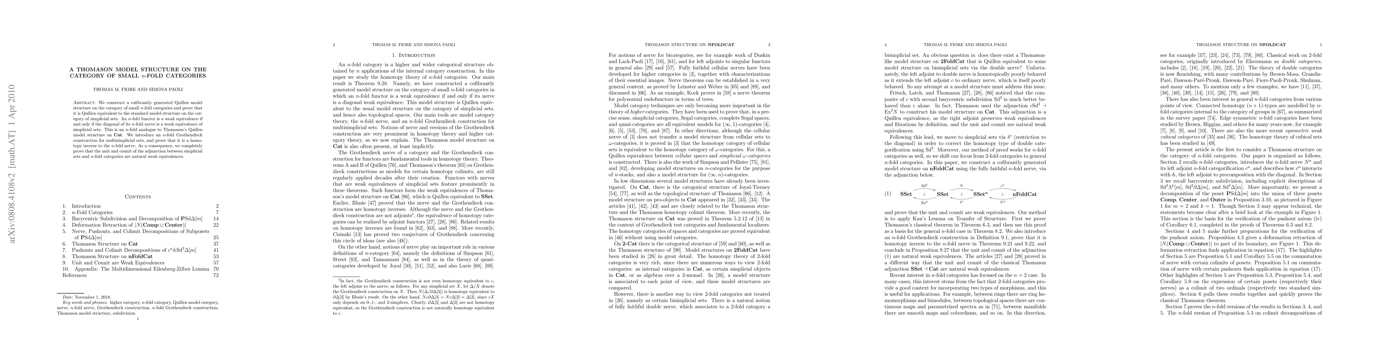 This paper constructs a cofibrantly generated Quillen model structure on small n-fold categories, showing its Quillen equivalence to the standard model on simplicial sets. It proves that n-fold functors are weak equivalences if their n-fold nerve diagonals are weak equivalences of simplicial sets.