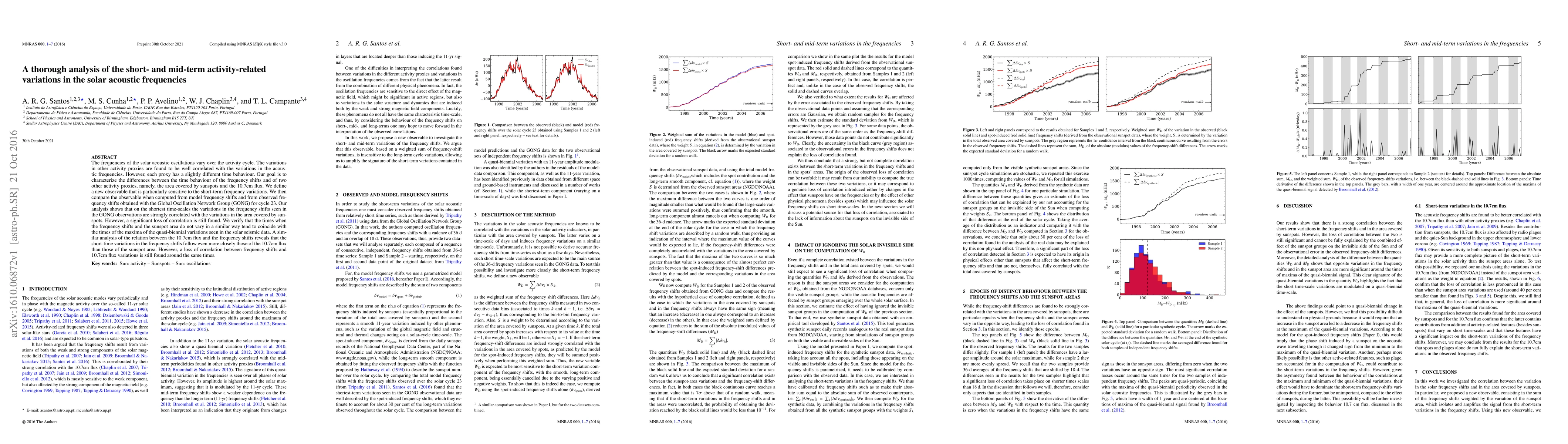 The frequencies of the solar acoustic oscillations vary over the activity cycle. The variations in other activity proxies are found to be well correlated with the variations in the acoustic frequencies. However, each proxy has a slightly different time behaviour. Our goal is to characterize the differences between the time behaviour of the frequency shifts and of two other activity proxies, namely, the area covered by sunspots and the 10.7cm flux. We define a new observable that is particularly sensitive to the short-term frequency variations. We then compare the observable when computed from model frequency shifts and from observed frequency shifts obtained with the Global Oscillation Network Group (GONG) for cycle 23. Our analysis shows that on the shortest time-scales the variations in the frequency shifts seen in the GONG observations are strongly correlated with the variations in the area covered by sunspots. However, a significant loss of correlation is still found. We verify that the times when the frequency shifts and the sunspot area do not vary in a similar way tend to coincide with the times of the maxima of the quasi-biennial variations seen in the solar seismic data. A similar analysis of the relation between the 10.7cm flux and the frequency shifts reveals that the short-time variations in the frequency shifts follow even more closely those of the 10.7cm flux than those of the sunspot area. However, a loss of correlation between frequency shifts and 10.7cm flux variations is still found around the same times.