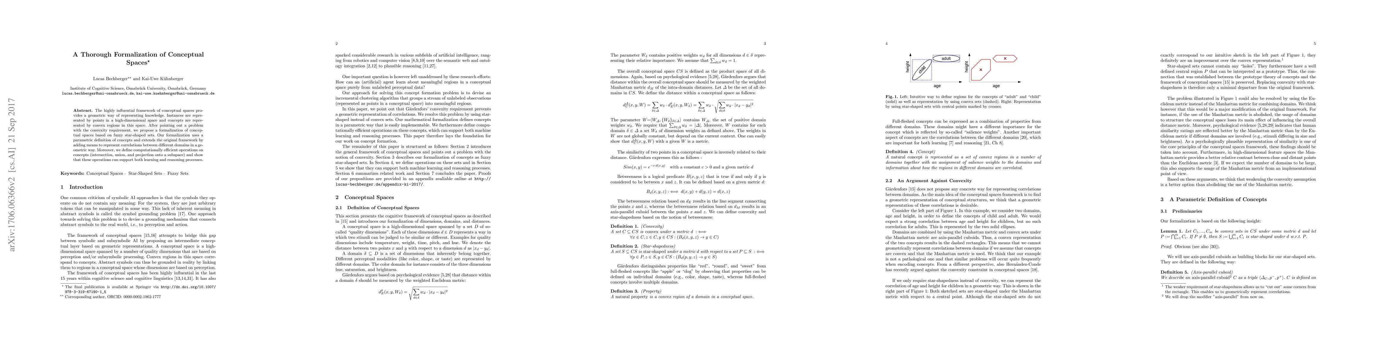 This paper formalizes the conceptual spaces framework using fuzzy star-shaped sets instead of convex regions to address the limitations of the original approach. It introduces efficient operations for learning and reasoning, and represents correlations between different domains geometrically.