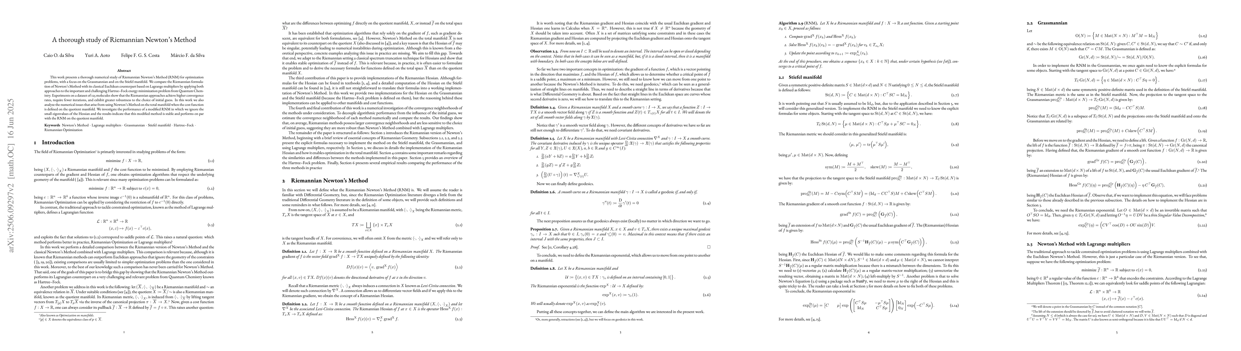 This work presents a thorough numerical study of Riemannian Newton's Method (RNM) for optimization problems, with a focus on the Grassmannian and on the Stiefel manifold. We compare the Riemannian formulation of Newton's Method with its classical Euclidean counterpart based on Lagrange multipliers by applying both approaches to the important and challenging Hartree--Fock energy minimization problem from Quantum Chemistry. Experiments on a dataset of 125 molecules show that the Riemannian approaches achieve higher convergence rates, require fewer iterations, and exhibit greater robustness to the choice of initial guess. In this work we also analyze the numerical issues that arise from using Newton's Method on the total manifold when the cost function is defined on the quotient manifold. We investigate the performance of a modified RNM in which we ignore the small eigenvalues of the Hessian and the results indicate that this modified method is stable and performs on par with the RNM on the quotient manifold.