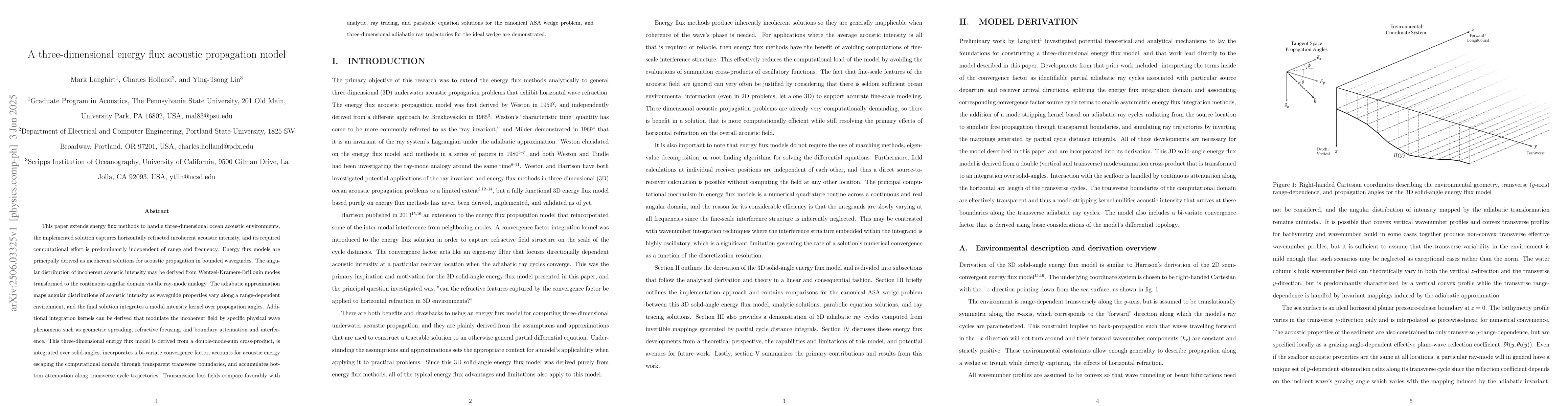 This research paper introduces a three-dimensional energy flux acoustic propagation model that captures horizontally refracted incoherent acoustic intensity with minimal computational effort, offering promising results for predicting sound transmission loss in ocean environments.