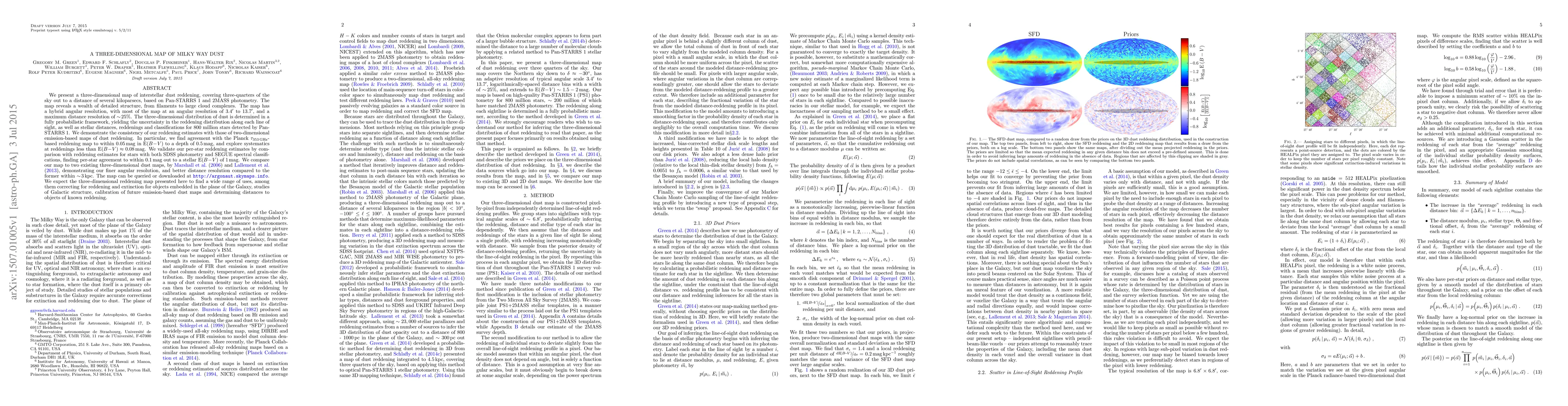 This paper presents a high-resolution three-dimensional map of interstellar dust reddening in the Milky Way, derived from Pan-STARRS 1 and 2MASS data, revealing detailed structures like filaments and cloud complexes. The map's probabilistic framework provides uncertainties and stellar classifications for 800 million stars, and it demonstrates consistency with existing reddening maps.