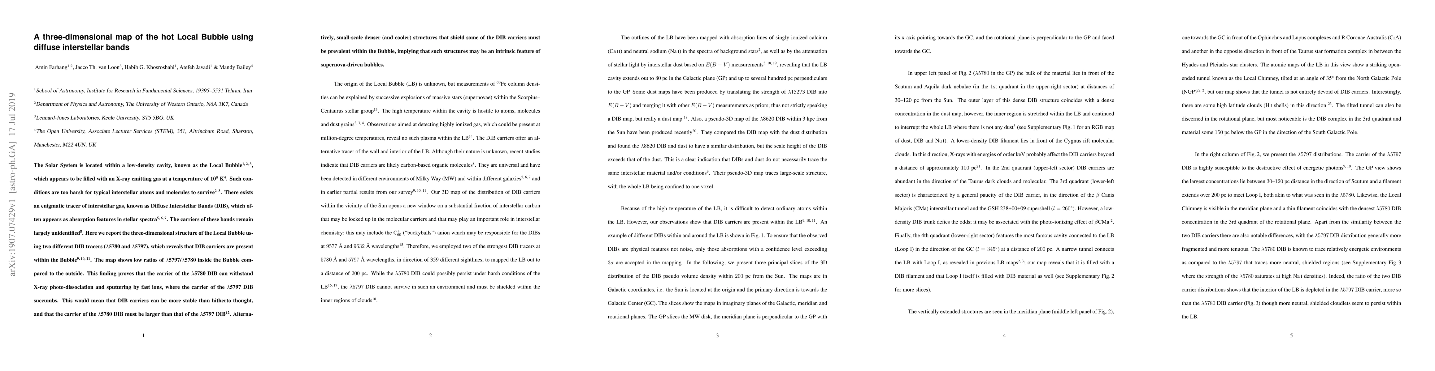 This paper presents a three-dimensional map of the Local Bubble using Diffuse Interstellar Bands (DIB) as tracers, revealing that DIB carriers survive within the harsh conditions of the Bubble. The study finds that the carrier of the $\lambda$5780 DIB is more stable than previously thought, suggesting either a larger size or the presence of small-scale dense structures within the Bubble.