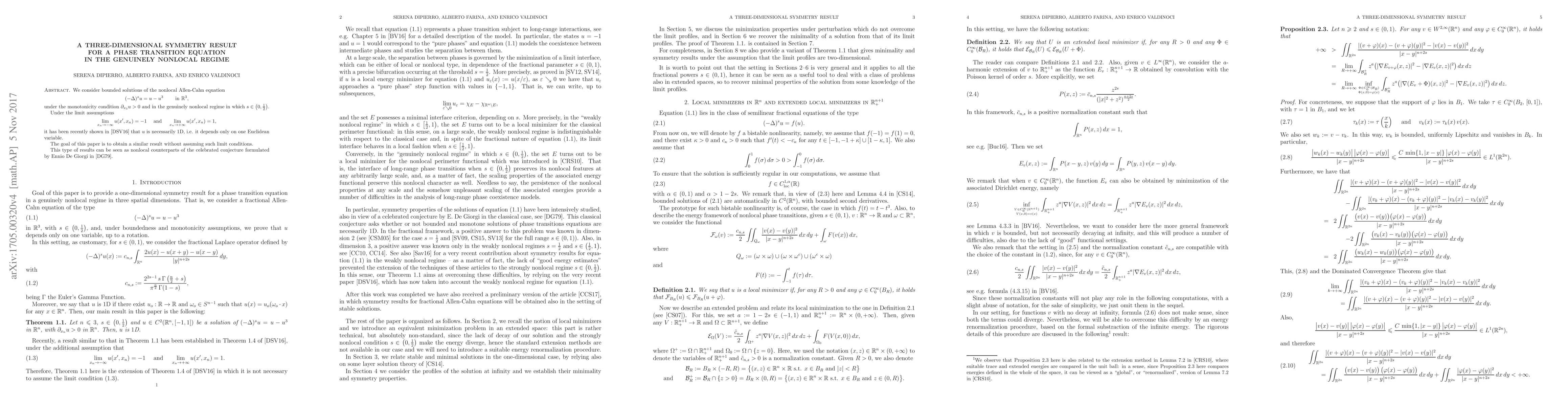 This paper presents a symmetry result for a three-dimensional nonlocal phase transition equation, showing that bounded solutions are one-dimensional under specific conditions, without relying on limit assumptions. This advances understanding in nonlocal equations, akin to De Giorgi's conjecture.