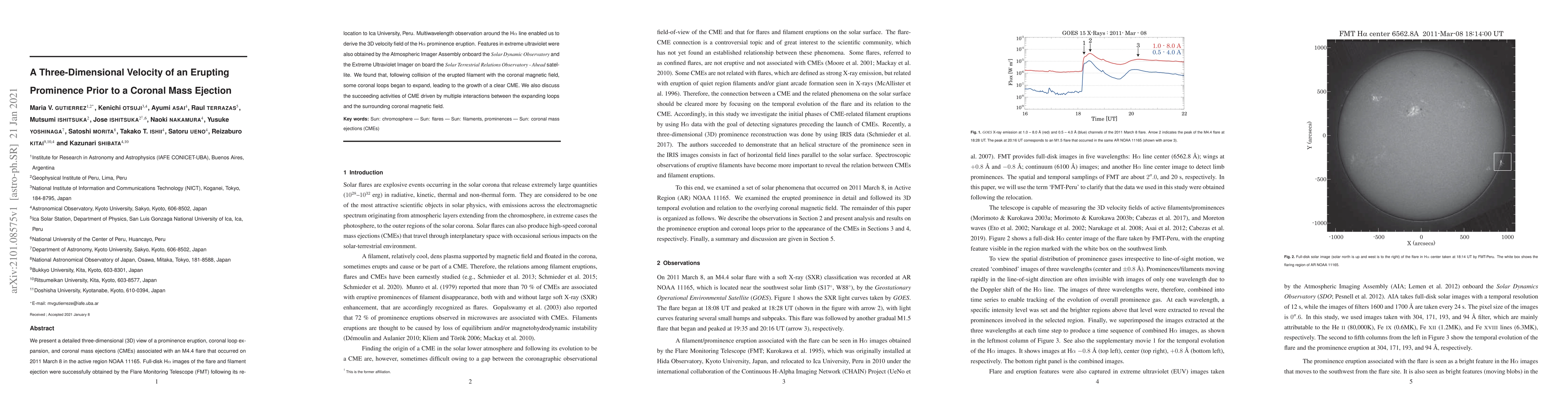 We present a detailed three-dimensional (3D) view of a prominence eruption, coronal loop expansion, and coronal mass ejections (CMEs) associated with an M4.4 flare that occurred on 2011 March 8 in the active region NOAA 11165. Full-disk H$\alpha$ images of the flare and filament ejection were successfully obtained by the Flare Monitoring Telescope (FMT) following its relocation to Ica University, Peru. Multiwavelength observation around the H$\alpha$ line enabled us to derive the 3D velocity field of the H$\alpha$ prominence eruption. Features in extreme ultraviolet were also obtained by the Atmospheric Imager Assembly onboard the {\it Solar Dynamic Observatory} and the Extreme Ultraviolet Imager on board the {\it Solar Terrestrial Relations Observatory - Ahead} satellite. We found that, following collision of the erupted filament with the coronal magnetic field, some coronal loops began to expand, leading to the growth of a clear CME. We also discuss the succeeding activities of CME driven by multiple interactions between the expanding loops and the surrounding coronal magnetic field.