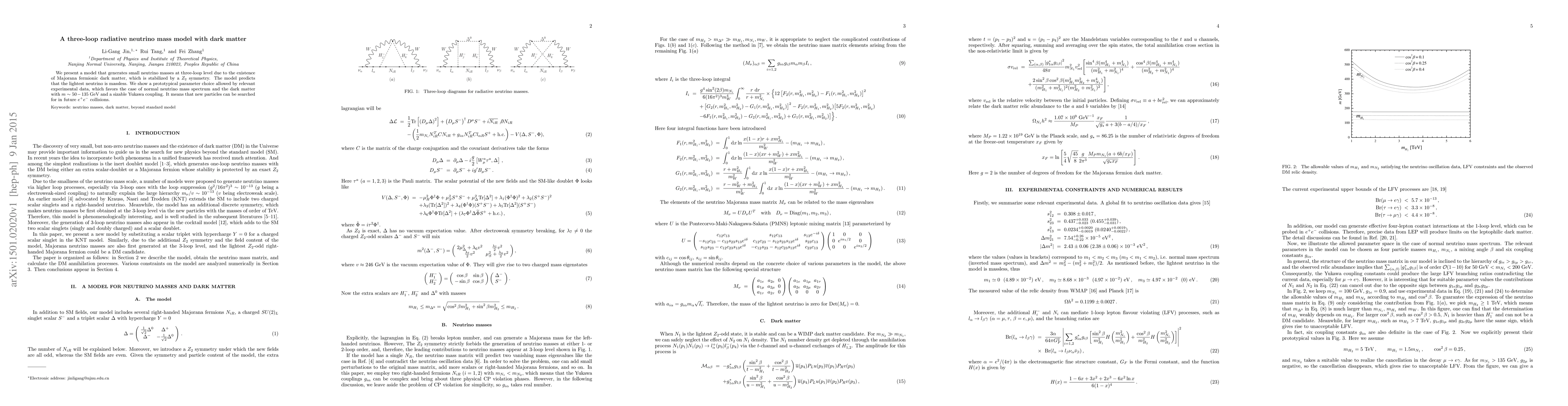 This paper proposes a three-loop radiative neutrino mass model where Majorana fermions serve as dark matter, stabilized by a Z2 symmetry. The model predicts a massless lightest neutrino and suggests a parameter range compatible with normal mass spectrum and dark matter masses in the 50-135 GeV range, indicating potential detection in future collider experiments.