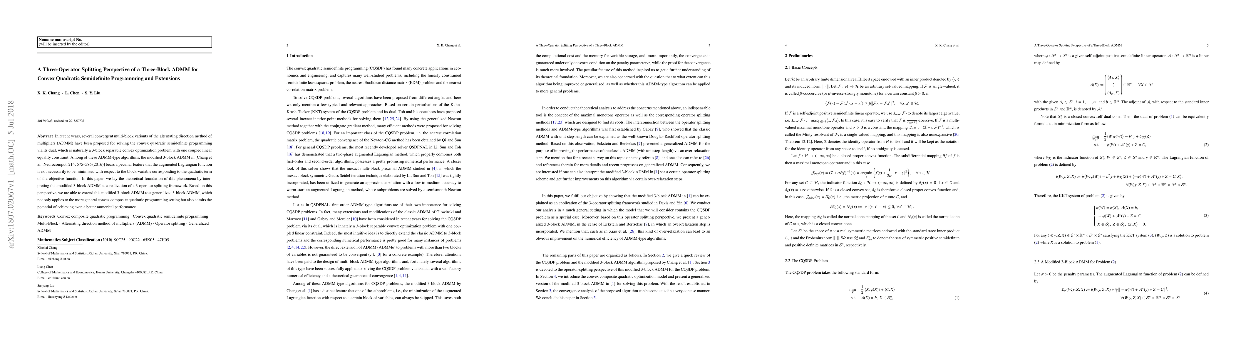 This paper explores a modified 3-block ADMM for convex quadratic semidefinite programming, interpreting it through a 3-operator splitting framework to extend its applicability and potentially improve numerical performance. The generalized 3-block ADMM is shown to handle more complex convex composite quadratic programming problems.