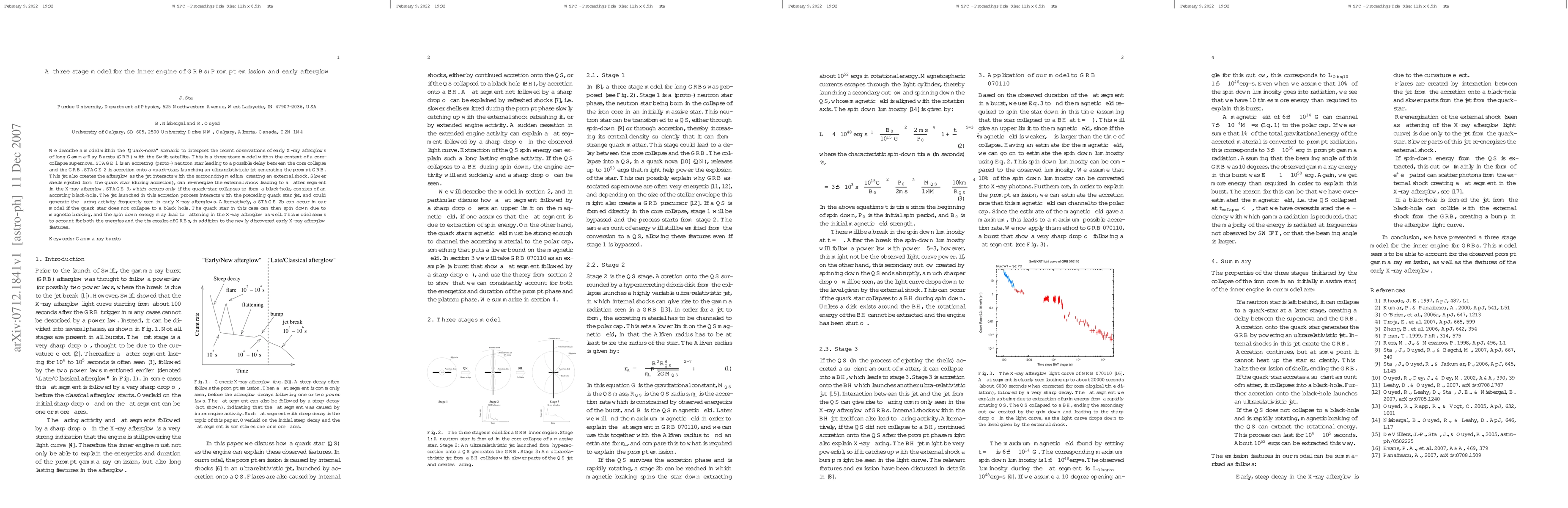 This paper proposes a three-stage "Quark-nova" model to explain the prompt emission and early afterglow of long Gamma-Ray Bursts (GRBs), involving a core-collapse supernova, an accreting quark-star, and potentially a black hole. The model accounts for the observed energies, timescales, and newly discovered early X-ray afterglow features of GRBs.
