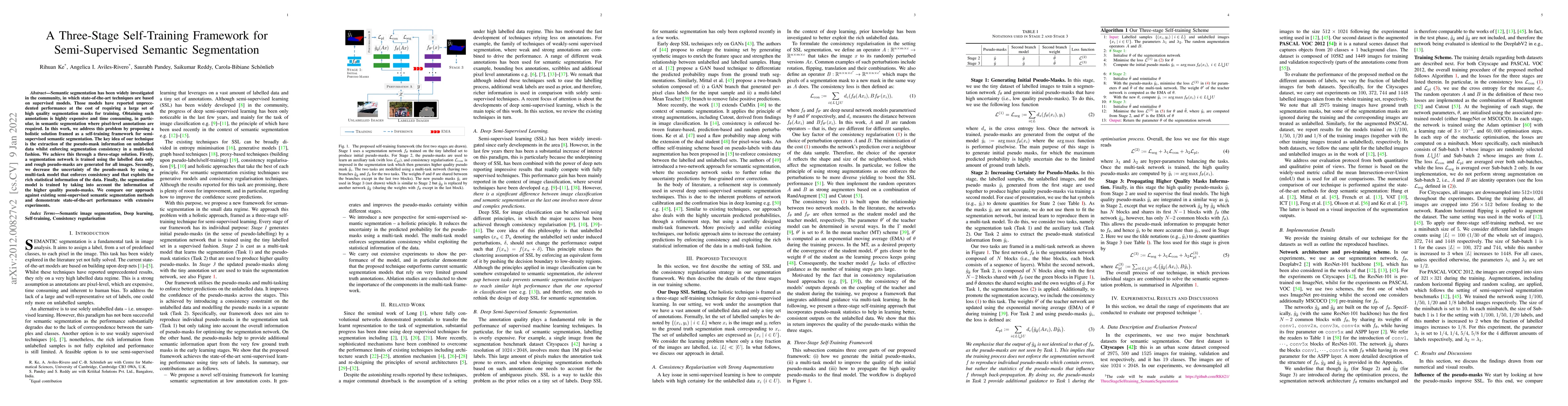 This paper proposes a three-stage self-training framework for semi-supervised semantic segmentation, addressing the challenge of expensive and time-consuming annotation requirements. The method extracts pseudo-masks' statistical information to reduce uncertainty and enforce segmentation consistency, achieving state-of-the-art performance.