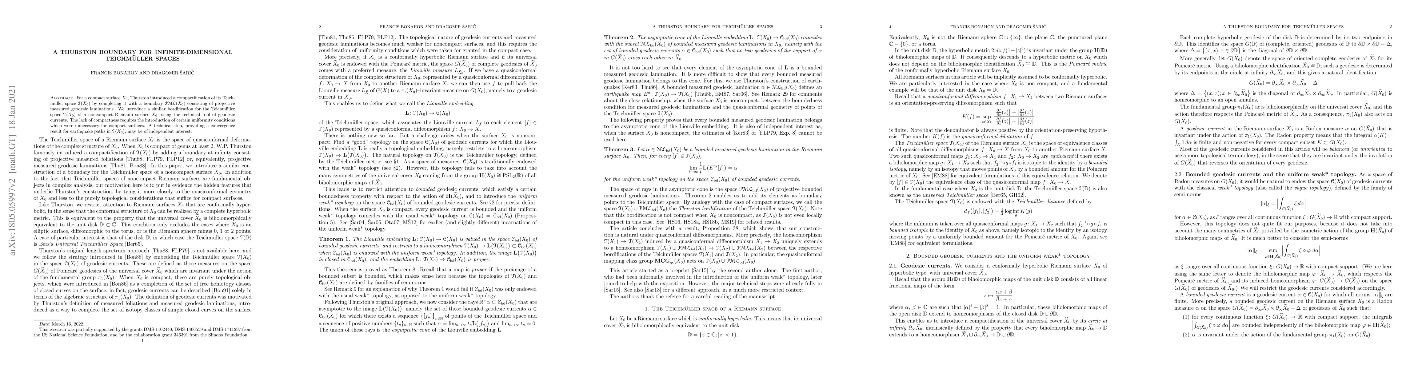 This paper extends Thurston's compactification of Teichmüller spaces for compact surfaces to noncompact Riemann surfaces, employing geodesic currents and introducing uniformity conditions. A convergence result for earthquake paths is presented, which may be of independent interest.