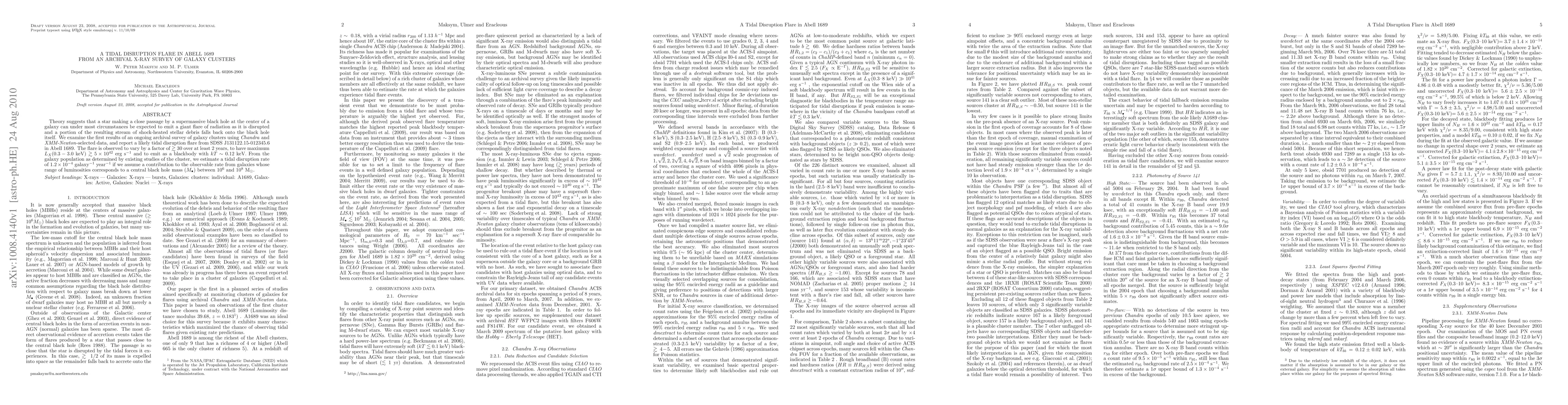 This research identifies a likely tidal disruption flare from a star near a supermassive black hole in Abell 1689, using archival X-ray data from Chandra and XMM. The flare varies significantly over two years, emitting as a blackbody with a temperature of ~0.12 keV and reaching X-ray luminosity >5 x 10^42 erg s^-1. The team estimates a tidal disruption rate of 1.2 x 10^-4 galaxy^-1 year^-1 for black holes with masses between 10^6 and 10^8 solar masses.