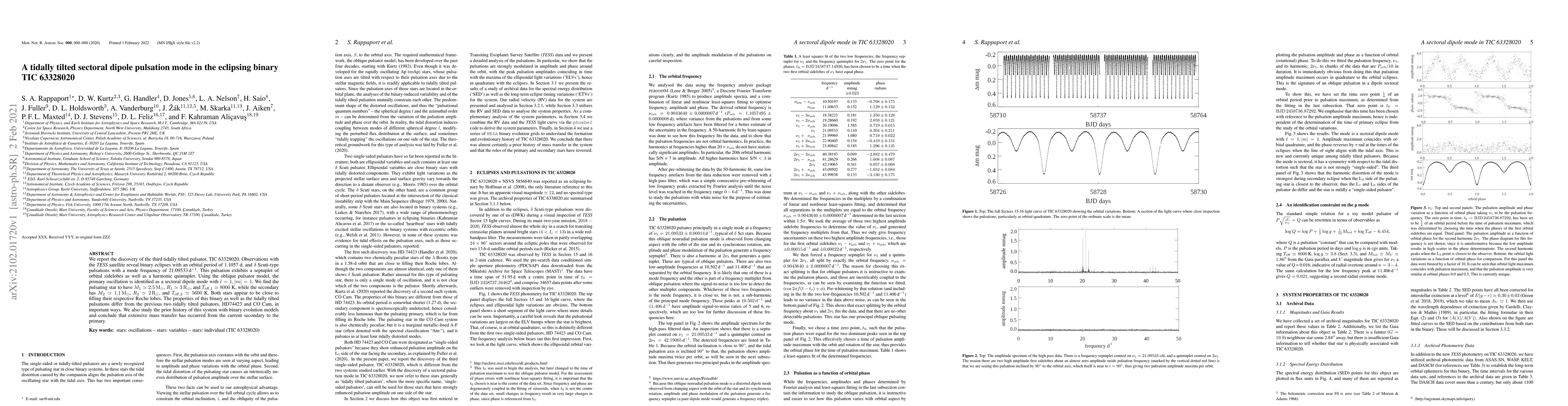 We report the discovery of the third tidally tilted pulsator, TIC 63328020. Observations with the TESS satellite reveal binary eclipses with an orbital period of 1.1057 d, and $\delta$ Scuti-type pulsations with a mode frequency of 21.09533 d$^{-1}$. This pulsation exhibits a septuplet of orbital sidelobes as well as a harmonic quintuplet. Using the oblique pulsator model, the primary oscillation is identified as a sectoral dipole mode with $l = 1, |m| = 1$. We find the pulsating star to have $M_1 \simeq 2.5\, {\rm M}_\odot$, $R_1 \simeq 3 \, {\rm R}_\odot$, and $T_{\rm eff,1} \simeq 8000$ K, while the secondary has $M_2 \simeq 1.1 \, {\rm M}_\odot$, $R_2 \simeq 2 \, {\rm R}_\odot$, and $T_{\rm eff,2} \simeq 5600$ K. Both stars appear to be close to filling their respective Roche lobes. The properties of this binary as well as the tidally tilted pulsations differ from the previous two tidally tilted pulsators, HD74423 and CO Cam, in important ways. We also study the prior history of this system with binary evolution models and conclude that extensive mass transfer has occurred from the current secondary to the primary.