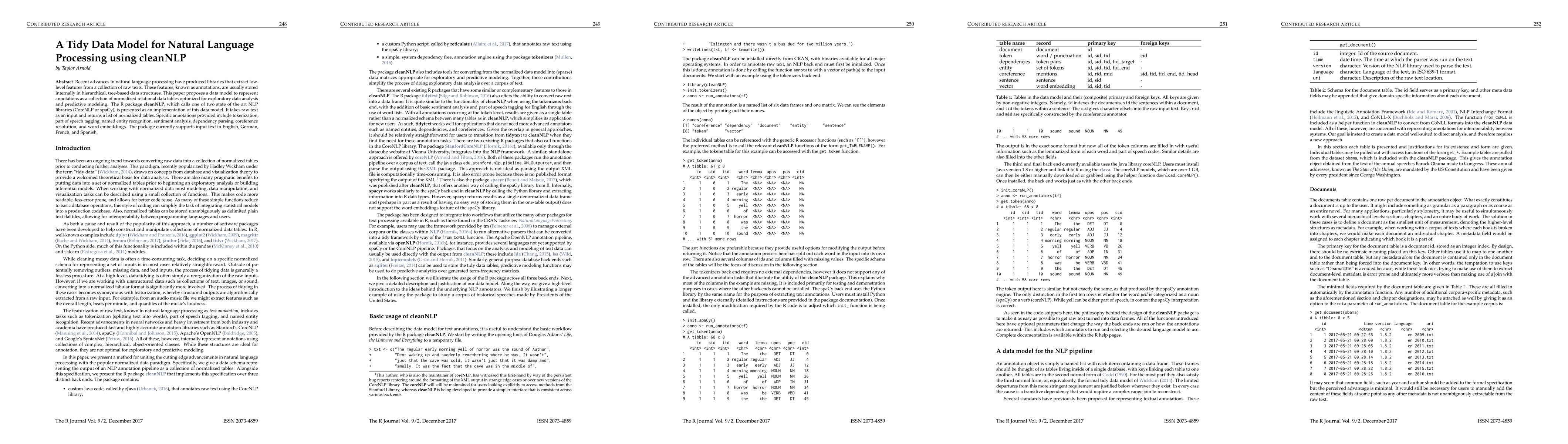 Summary: The cleanNLP package offers efficient tools for converting textual data into normalized tables using Stanford's CoreNLP, supporting multiple languages and various annotation tasks like tokenization, named entity recognition, and sentiment analysis.
