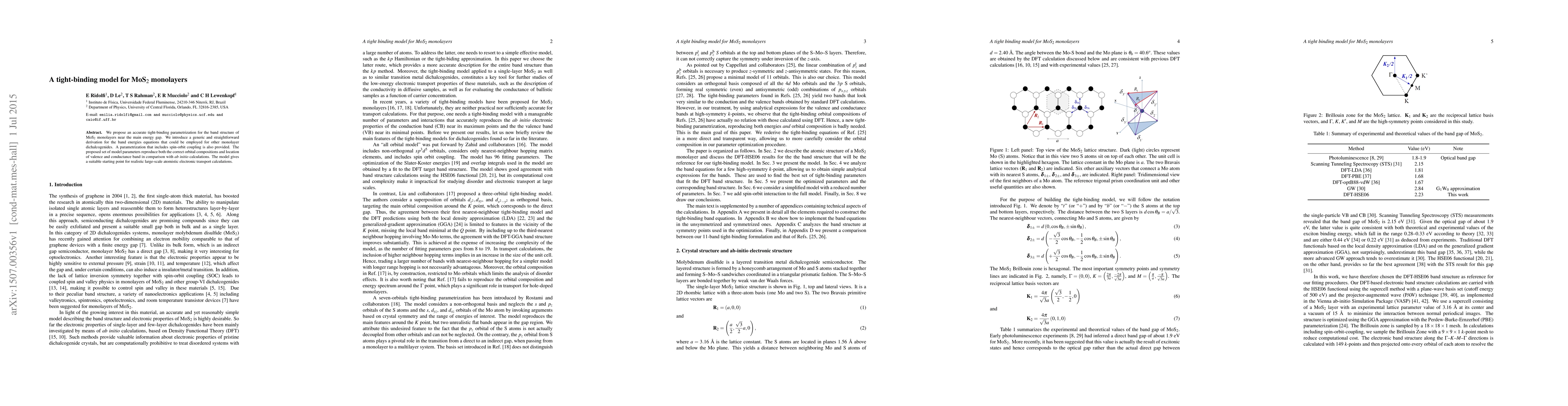 Researchers develop a tight-binding model for MoS$_2$ monolayers that accurately reproduces band structures and electronic transport calculations, providing a suitable starting point for large-scale simulations.
