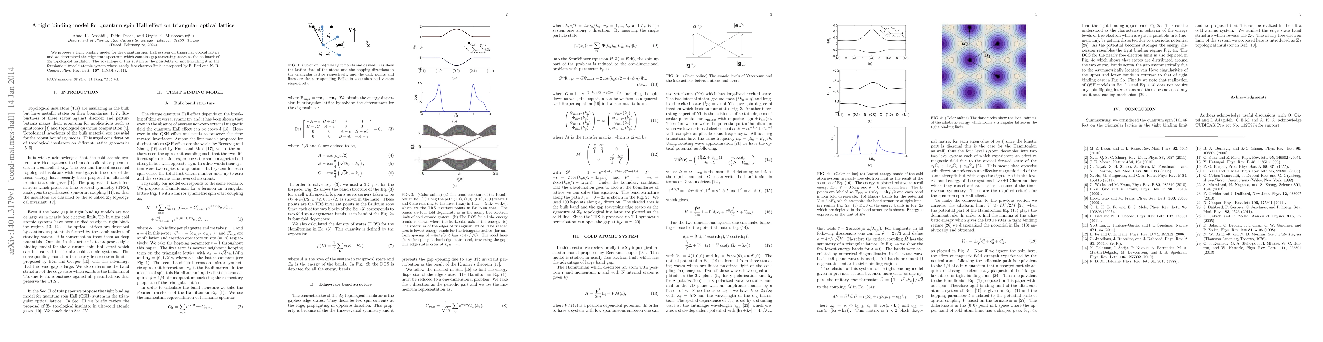 Researchers propose a tight binding model for the quantum spin Hall effect on a triangular optical lattice, predicting gap-traversing states that characterize Z2 topological insulators. The system leverages ultracold atomic systems, offering a promising pathway to experimental realization.