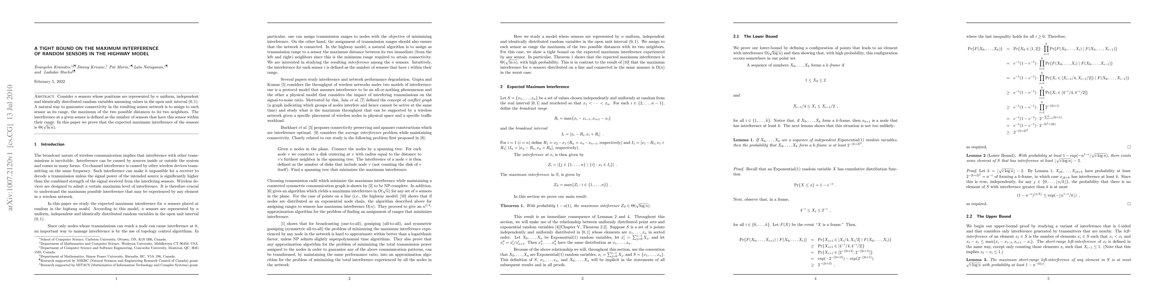 This research paper proves that for a network of randomly placed sensors, the expected maximum interference is approximately θ(√∨n), which grows with the square root of the number of sensors.