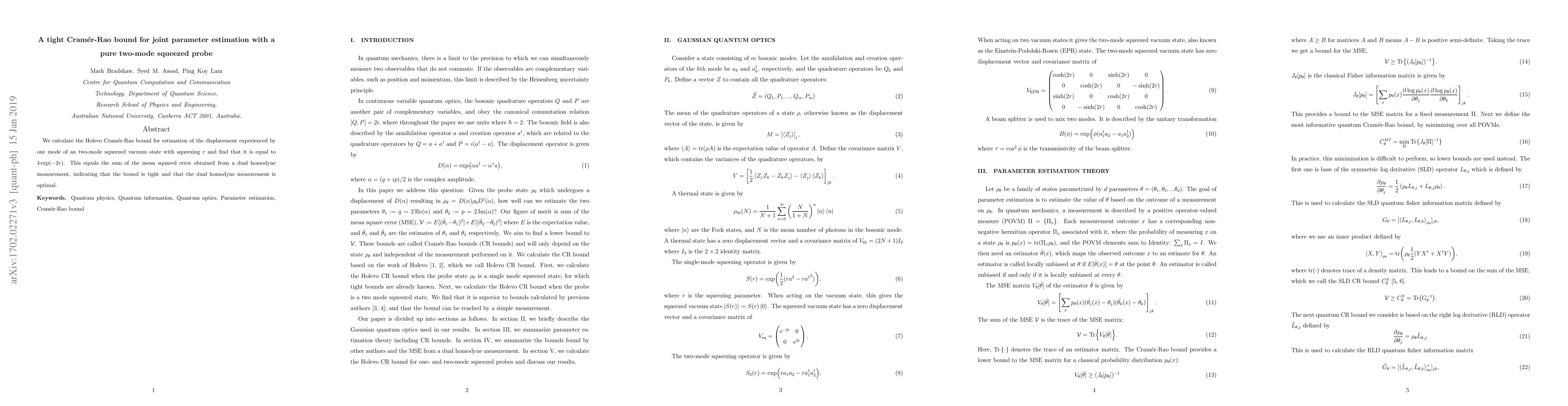 We calculate the Holevo Cram\'er-Rao bound for estimation of the displacement experienced by one mode of an two-mode squeezed vacuum state with squeezing r and find that it is equal to 4exp(-2r). This equals the sum of the mean squared error obtained from a dual homodyne measurement, indicating that the bound is tight and that the dual homodyne measurement is optimal.