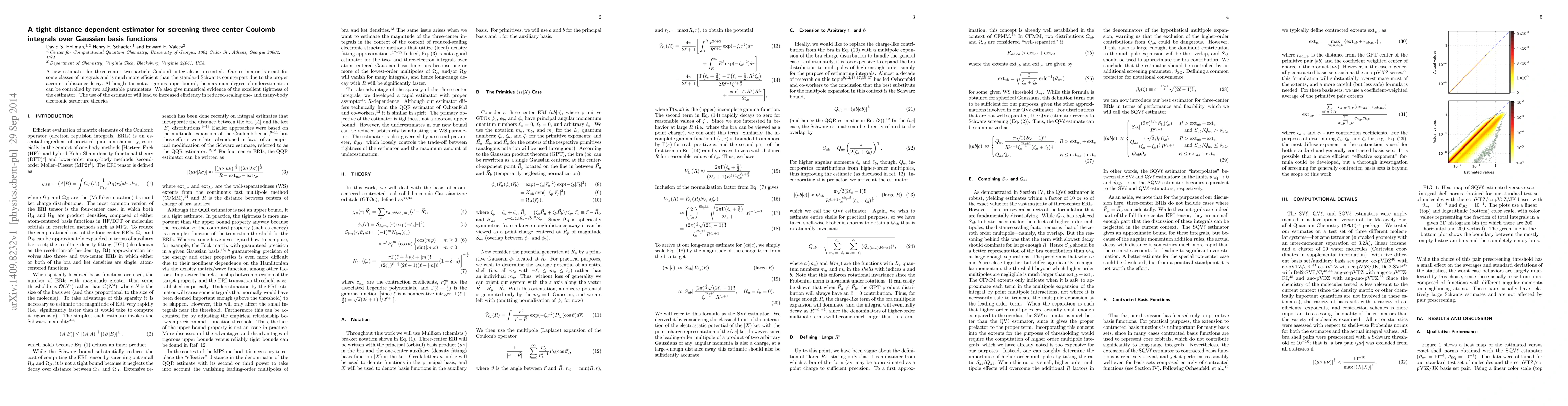 A new estimator for three-center two-particle Coulomb integrals is presented. Our estimator is exact for some classes of integrals and is much more efficient than the standard Schwartz counterpart due to the proper account of distance decay. Although it is not a rigorous upper bound, the maximum degree of underestimation can be controlled by two adjustable parameters. We also give numerical evidence of the excellent tightness of the estimator. The use of the estimator will lead to increased efficiency in reduced-scaling one- and many-body electronic structure theories.