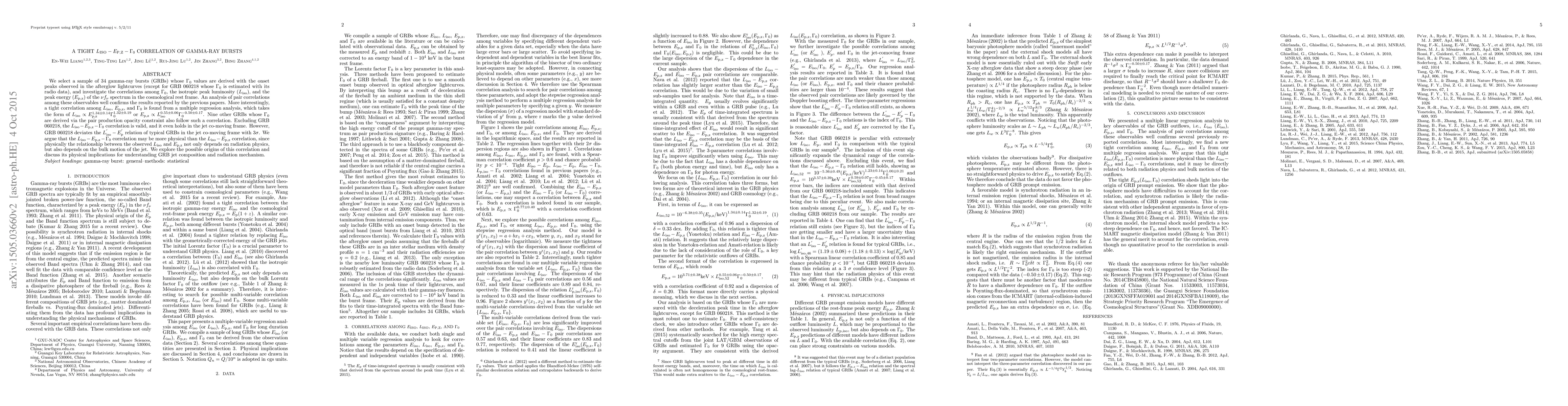 This research investigates a tight correlation among the isotropic peak luminosity ($L_{\rm iso}$), peak energy ($E_{\rm p,z}$), and initial bulk Lorentz factor ($\Gamma_0$) of 34 gamma-ray bursts (GRBs). The findings suggest that $L_{\rm iso}$ is proportional to $E_{\rm p,z}$ and $\Gamma_0$, reinforcing previous results and offering deeper insights into the physical mechanisms underlying GRB jets.