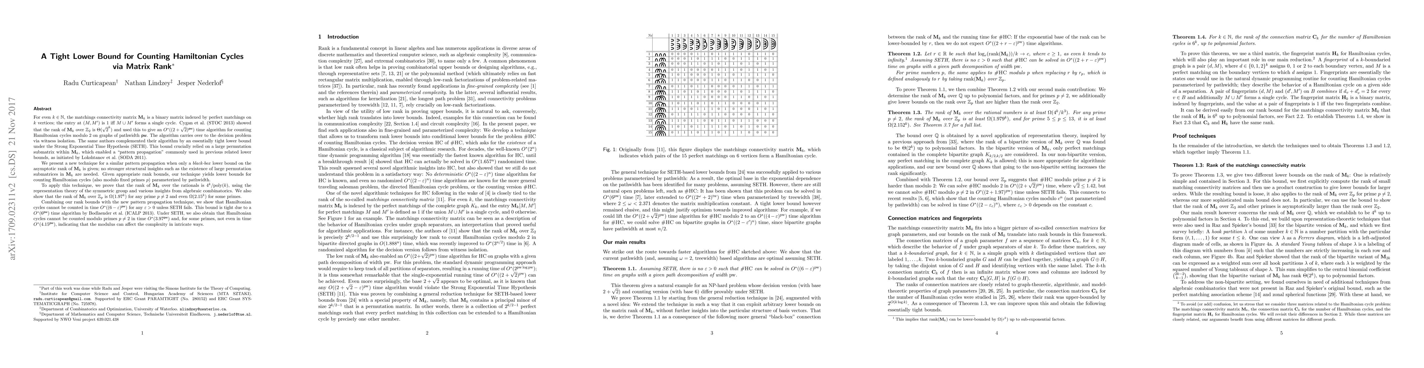 For even $k$, the matchings connectivity matrix $\mathbf{M}_k$ encodes which pairs of perfect matchings on $k$ vertices form a single cycle. Cygan et al. (STOC 2013) showed that the rank of $\mathbf{M}_k$ over $\mathbb{Z}_2$ is $\Theta(\sqrt 2^k)$ and used this to give an $O^*((2+\sqrt{2})^{\mathsf{pw}})$ time algorithm for counting Hamiltonian cycles modulo $2$ on graphs of pathwidth $\mathsf{pw}$. The same authors complemented their algorithm by an essentially tight lower bound under the Strong Exponential Time Hypothesis (SETH). This bound crucially relied on a large permutation submatrix within $\mathbf{M}_k$, which enabled a "pattern propagation" commonly used in previous related lower bounds, as initiated by Lokshtanov et al. (SODA 2011). We present a new technique for a similar pattern propagation when only a black-box lower bound on the asymptotic rank of $\mathbf{M}_k$ is given; no stronger structural insights such as the existence of large permutation submatrices in $\mathbf{M}_k$ are needed. Given appropriate rank bounds, our technique yields lower bounds for counting Hamiltonian cycles (also modulo fixed primes $p$) parameterized by pathwidth. To apply this technique, we prove that the rank of $\mathbf{M}_k$ over the rationals is $4^k / \mathrm{poly}(k)$. We also show that the rank of $\mathbf{M}_k$ over $\mathbb{Z}_p$ is $\Omega(1.97^k)$ for any prime $p\neq 2$ and even $\Omega(2.15^k)$ for some primes. As a consequence, we obtain that Hamiltonian cycles cannot be counted in time $O^*((6-\epsilon)^{\mathsf{pw}})$ for any $\epsilon>0$ unless SETH fails. This bound is tight due to a $O^*(6^{\mathsf{pw}})$ time algorithm by Bodlaender et al. (ICALP 2013). Under SETH, we also obtain that Hamiltonian cycles cannot be counted modulo primes $p\neq 2$ in time $O^*(3.97^\mathsf{pw})$, indicating that the modulus can affect the complexity in intricate ways.