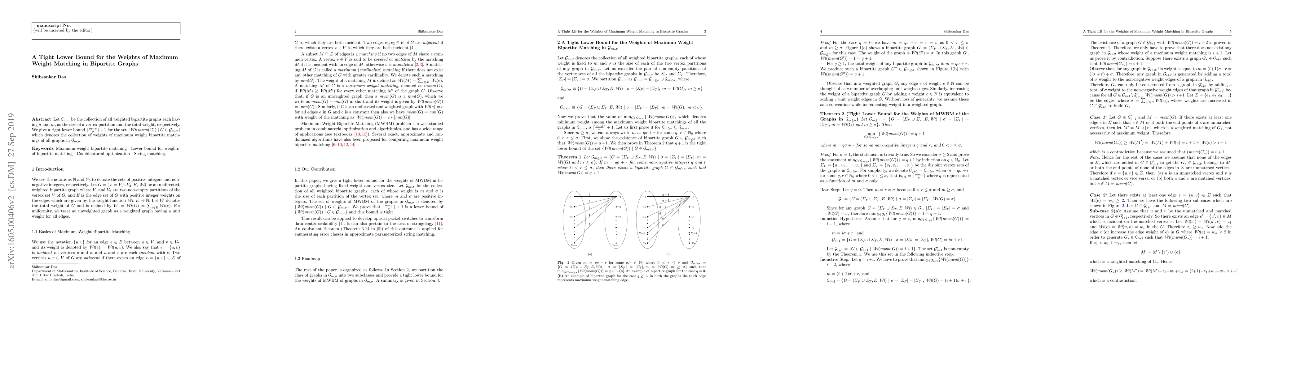 Let $\Ga$ be the collection of all weighted bipartite graphs each having $\sigma$ and $m$, as the size of a vertex partition and the total weight, respectively. We give a tight lower bound $\lceil \frac{m-\sigma}{\sigma} \rceil+1$ for the set $\{\textit{Wt}(\textit{mwm}(G))~|~G \in \Ga\}$ which denotes the collection of weights of maximum weight bipartite matchings of all graphs in $\Ga$.
