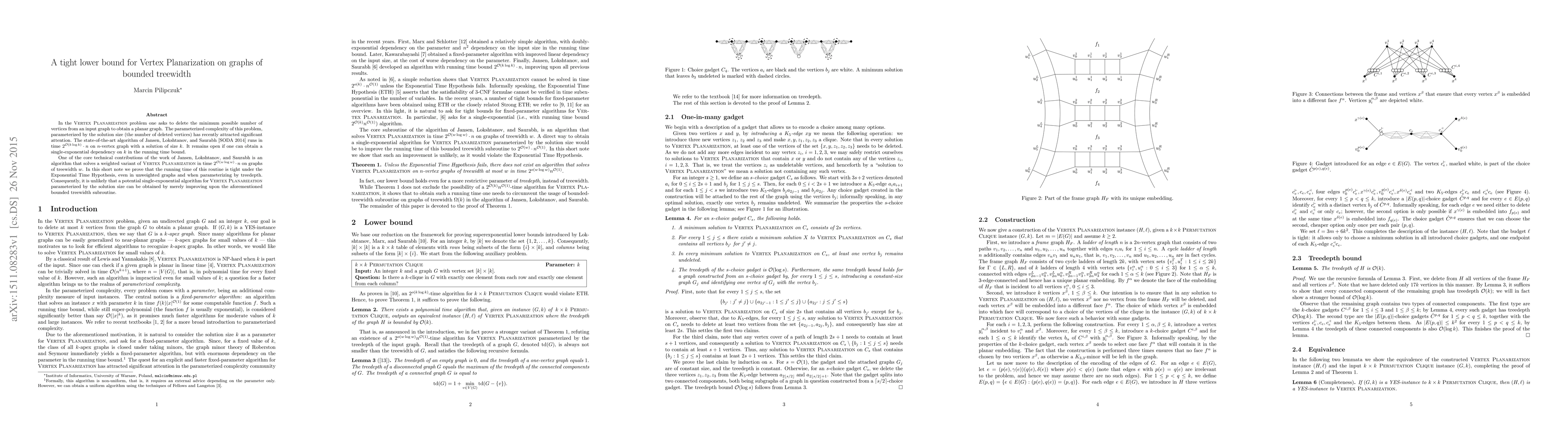 Researchers prove that a specific algorithm for Vertex Planarization on graphs of bounded treewidth is tight, making it unlikely to achieve a single-exponential improvement in running time.