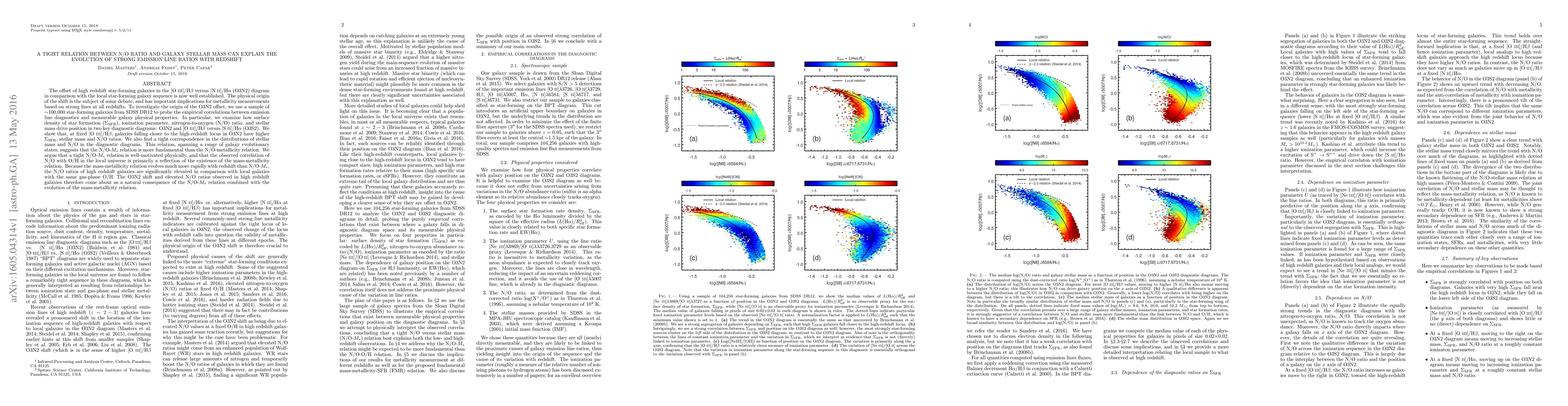 This paper investigates the relationship between the nitrogen-to-oxygen (N/O) ratio and galaxy stellar mass, demonstrating that this relation explains the evolution of strong emission line ratios with redshift. The study finds that high-redshift galaxies exhibit elevated N/O ratios due to their higher stellar mass, which drives the observed shift in diagnostic diagrams, thus challenging the traditional N/O-metallicity relation.