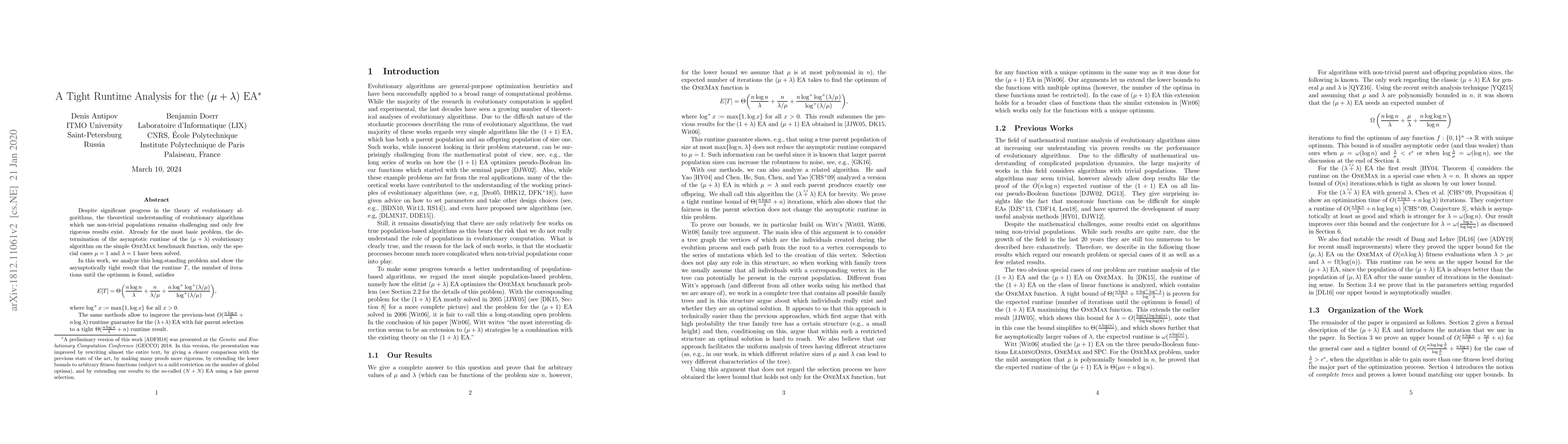 This paper provides a tight runtime analysis for the $(\mu + \lambda)$ evolutionary algorithm on the OneMax benchmark, showing that the expected runtime $E[T]$ is $\Theta\left(\frac{n\log n}{\lambda}+\frac{n}{\lambda / \mu} + \frac{n\log^+\log^+ \lambda/ \mu}{\log^+ \lambda / \mu}\right)$. It also improves the runtime guarantee for the $(\lambda+\lambda)$ EA with fair parent selection to a tight $\Theta\left(\frac{n \log n}{\lambda} + n\right)$.