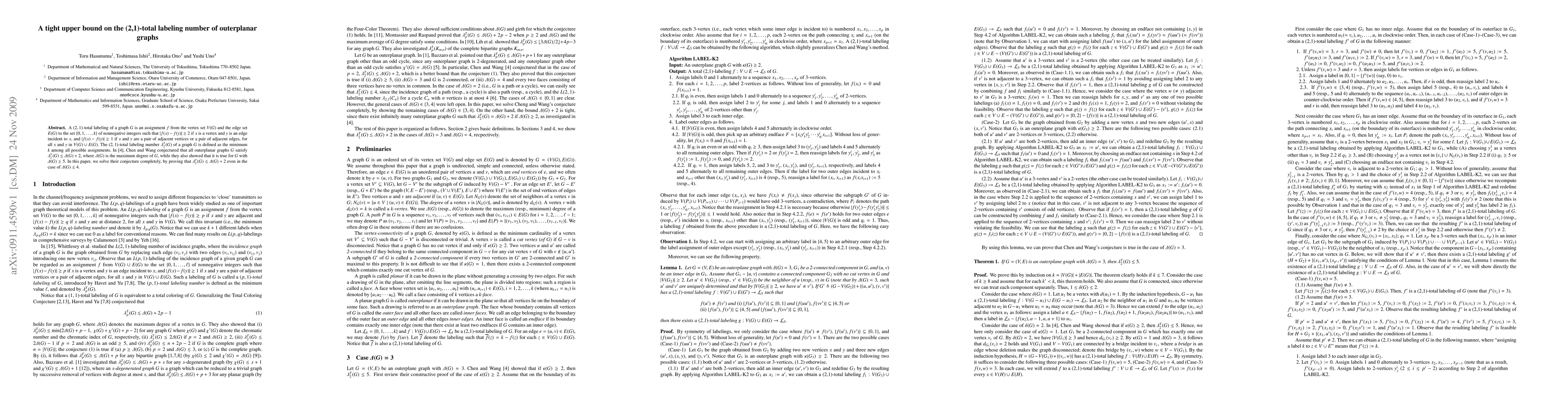 A $(2,1)$-total labeling of a graph $G$ is an assignment $f$ from the vertex set $V(G)$ and the edge set $E(G)$ to the set $\{0,1,...,k\}$ of nonnegative integers such that $|f(x)-f(y)|\ge 2$ if $x$ is a vertex and $y$ is an edge incident to $x$, and $|f(x)-f(y)|\ge 1$ if $x$ and $y$ are a pair of adjacent vertices or a pair of adjacent edges, for all $x$ and $y$ in $V(G)\cup E(G)$. The $(2,1)$-total labeling number $\lambda^T_2(G)$ of a graph $G$ is defined as the minimum $k$ among all possible assignments. In [D. Chen and W. Wang. (2,1)-Total labelling of outerplanar graphs. Discr. Appl. Math. 155, 2585--2593 (2007)], Chen and Wang conjectured that all outerplanar graphs $G$ satisfy $\lambda^T_2(G) \leq \Delta(G)+2$, where $\Delta(G)$ is the maximum degree of $G$, while they also showed that it is true for $G$ with $\Delta(G)\geq 5$. In this paper, we solve their conjecture completely, by proving that $\lambda^T_2(G) \leq \Delta(G)+2$ even in the case of $\Delta(G)\leq 4 $.