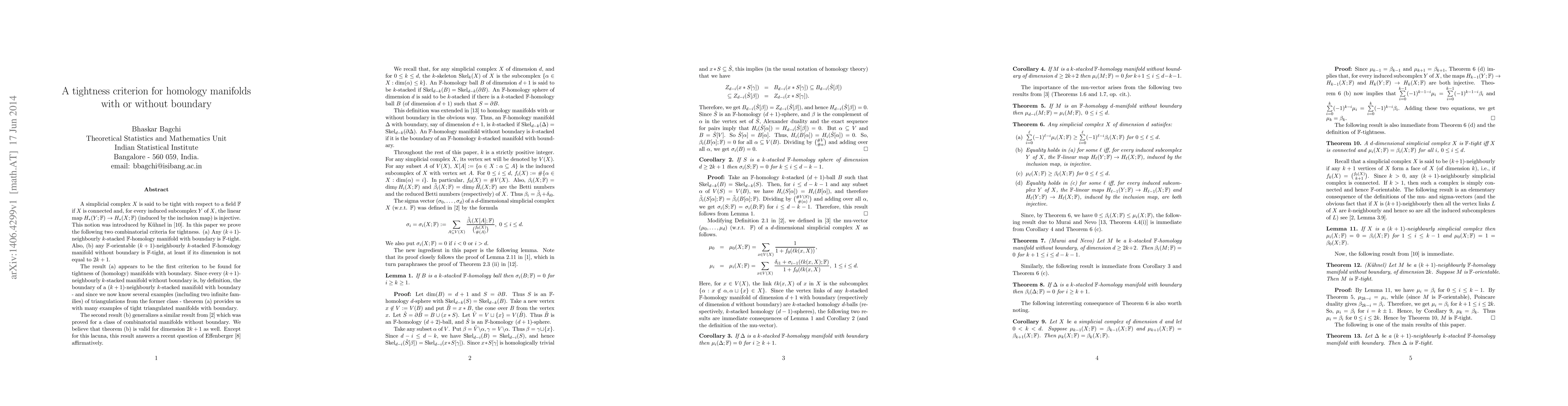 A simplicial complex $X$ is said to be tight with respect to a field $\mathbb{F}$ if $X$ is connected and, for every induced subcomplex $Y$ of $X$, the linear map $H_\ast (Y; \mathbb{F}) \rightarrow H_\ast (X; \mathbb{F})$ (induced by the inclusion map) is injective. This notion was introduced by K\"{u}hnel in [10]. In this paper we prove the following two combinatorial criteria for tightness. (a) Any $(k+1)$-neighbourly $k$-stacked $\mathbb{F}$-homology manifold with boundary is $\mathbb{F}$-tight. Also, (b) any $\mathbb{F}$-orientable $(k+1)$-neighbourly $k$-stacked $\mathbb{F}$-homology manifold without boundary is $\mathbb{F}$-tight, at least if its dimension is not equal to $2k+1$. The result (a) appears to be the first criterion to be found for tightness of (homology) manifolds with boundary. Since every $(k+1)$-neighbourly $k$-stacked manifold without boundary is, by definition, the boundary of a $(k+1)$-neighbourly $k$-stacked manifold with boundary - and since we now know several examples (including two infinite families) of triangulations from the former class - theorem (a) provides us with many examples of tight triangulated manifolds with boundary. The second result (b) generalizes a similar result from [2] which was proved for a class of combinatorial manifolds without boundary. We believe that theorem (b) is valid for dimension $2k+1$ as well. Except for this lacuna, this result answers a recent question of Effenberger [8] affirmatively.