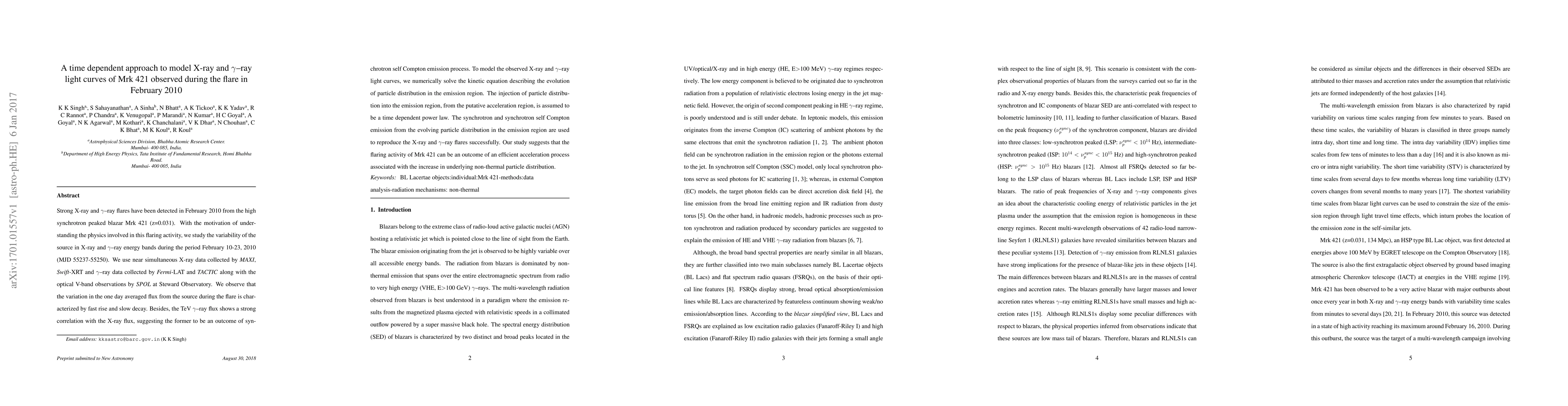 Researchers studied X-ray and gamma-ray light curves of Mrk 421 during a flare in February 2010, finding a strong correlation between TeV gamma-rays and X-rays suggesting synchrotron self-Compton emission. The study successfully models the flares using a time-dependent approach.