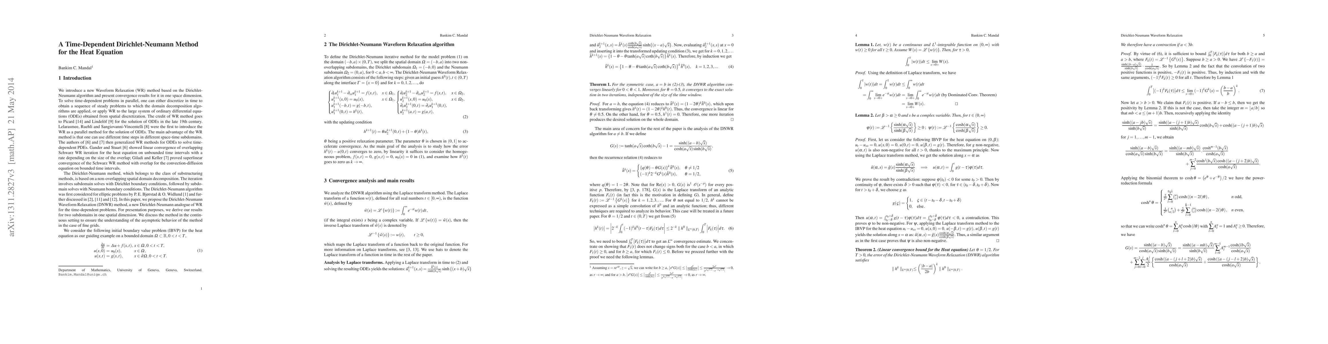 The Dirichlet-Neumann Waveform Relaxation Method provides a new approach to solving elliptic PDEs using waveform relaxation, which can be used in conjunction with domain decomposition techniques