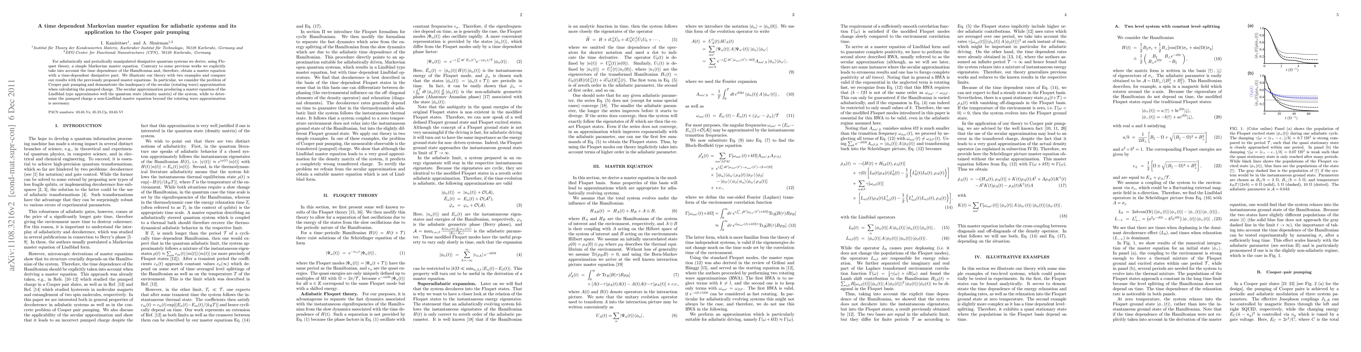 This paper derives a time-dependent Markovian master equation for adiabatically manipulated quantum systems using Floquet theory, highlighting the importance of considering the Hamiltonian's time dependence. The authors apply their theory to Cooper pair pumping, demonstrating the limitations of the secular approximation in calculating pumped charge.