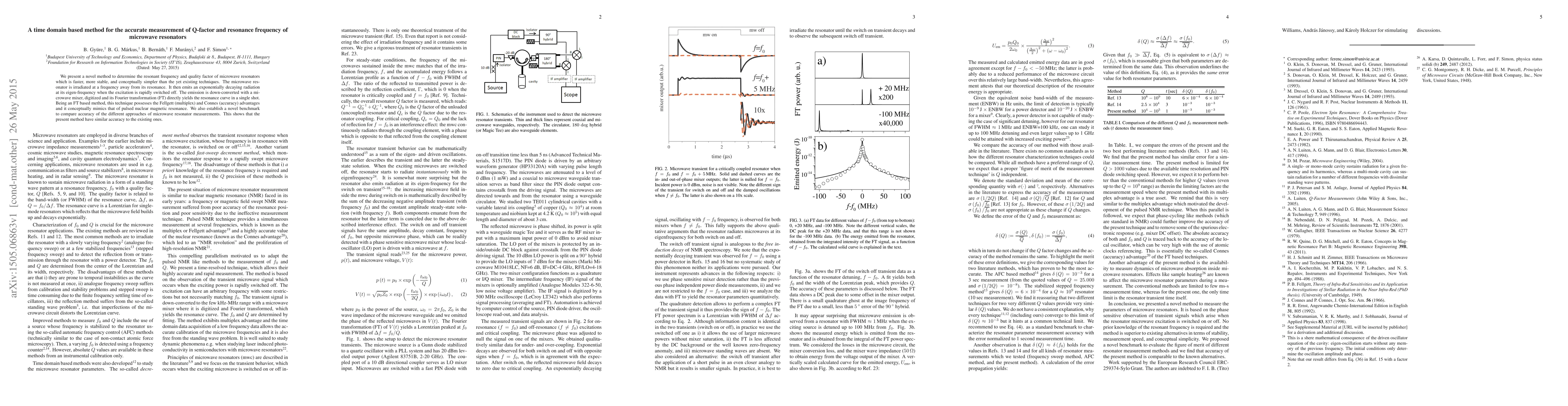 We present a novel method to determine the resonant frequency and quality factor of microwave resonators which is faster, more stable, and conceptually simpler than the yet existing techniques. The microwave resonator is irradiated at a frequency away from its resonance. It then emits an exponentially decaying radiation at its eigen-frequency when the excitation is rapidly switched off. The emission is down-converted with a microwave mixer, digitized and its Fourier transformation (FT) directly yields the resonance curve in a single shot. Being an FT based method, this technique possesses the Fellgett (multiplex) and Connes (accuracy) advantages and it conceptually mimics that of pulsed nuclear magnetic resonance. We also establish a novel benchmark to compare accuracy of the different approaches of microwave resonator measurements. This shows that the present method have similar accuracy to the existing ones.