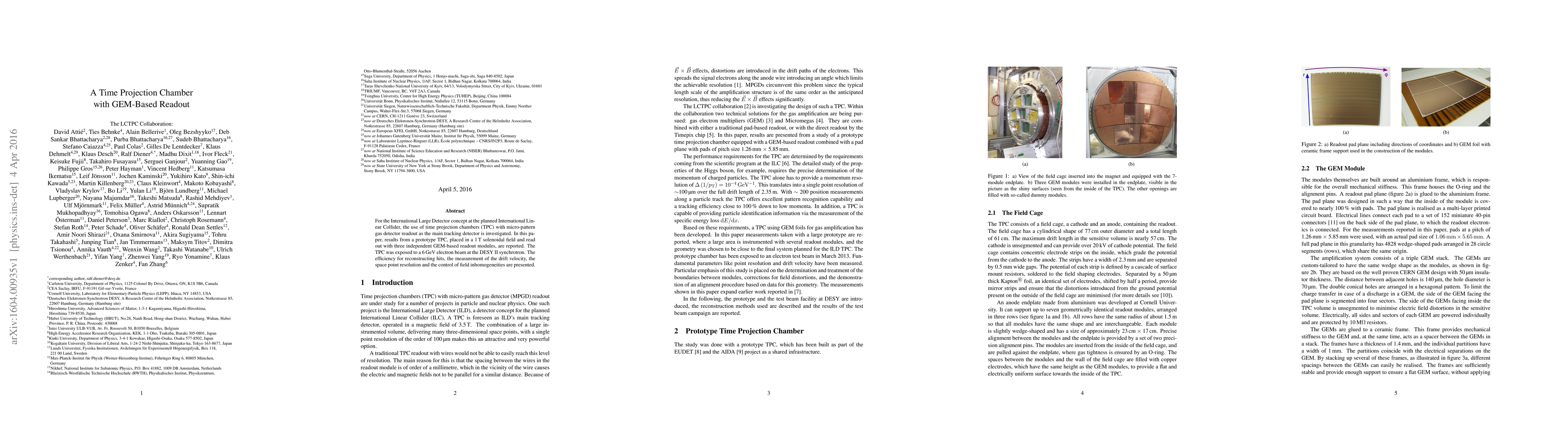 This paper investigates a prototype time projection chamber using GEM-based readout for the International Large Detector at the International Linear Collider. Results from tests in a 1 T magnetic field show efficiency in hit reconstruction, drift velocity measurement, space point resolution, and field inhomogeneity control.