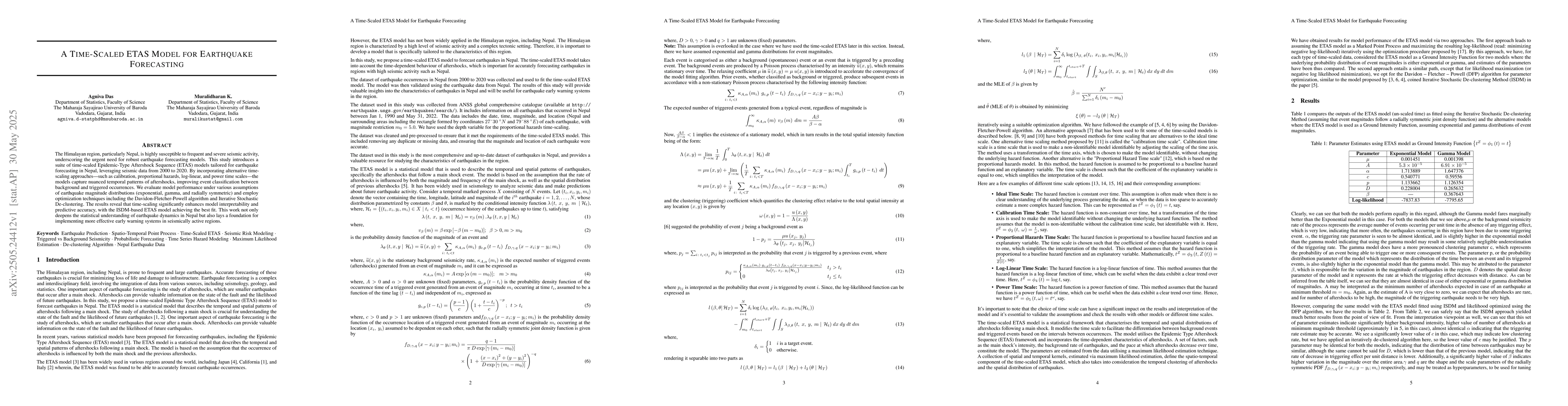 The study introduces a suite of time-scaled Epidemic-Type Aftershock Sequence (ETAS) models using seismic data from 2000 to 2020 in Nepal, incorporating calibration, proportional hazards, log-linear, and power time scales, and employing optimization techniques like the Davidon-Fletcher-Powell algorithm and Iterative Stochastic De-clustering.