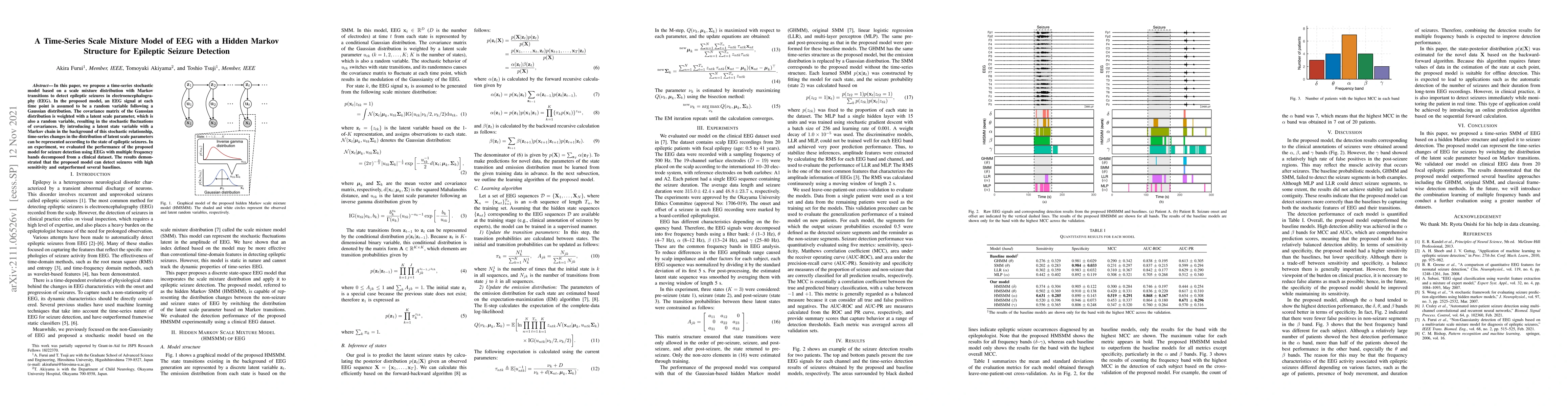 This paper proposes a time-series scale mixture model with a hidden Markov structure to detect epileptic seizures in EEG data, achieving high sensitivity and outperforming baseline methods. The model uses Gaussian distributions with stochastic covariances and a Markov chain to represent changes in seizure states.