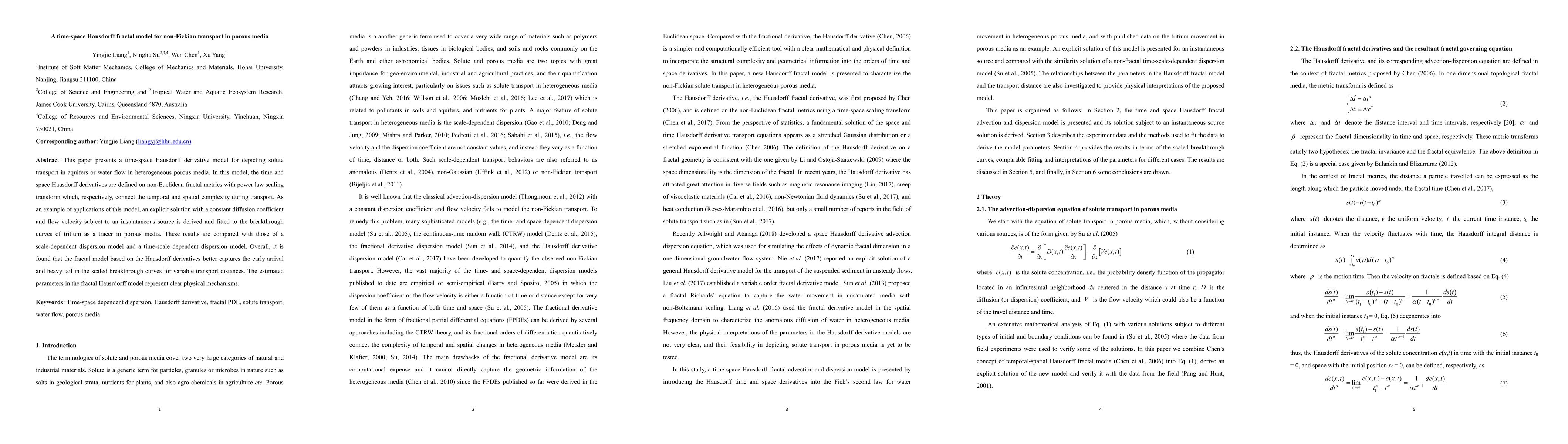 This paper introduces a time-space Hausdorff derivative model for non-Fickian transport in porous media, transforming it into an advection-dispersion equation with variable coefficients. The model better captures early arrival and heavy tails in breakthrough curves compared to traditional models, demonstrating clear physical mechanisms.