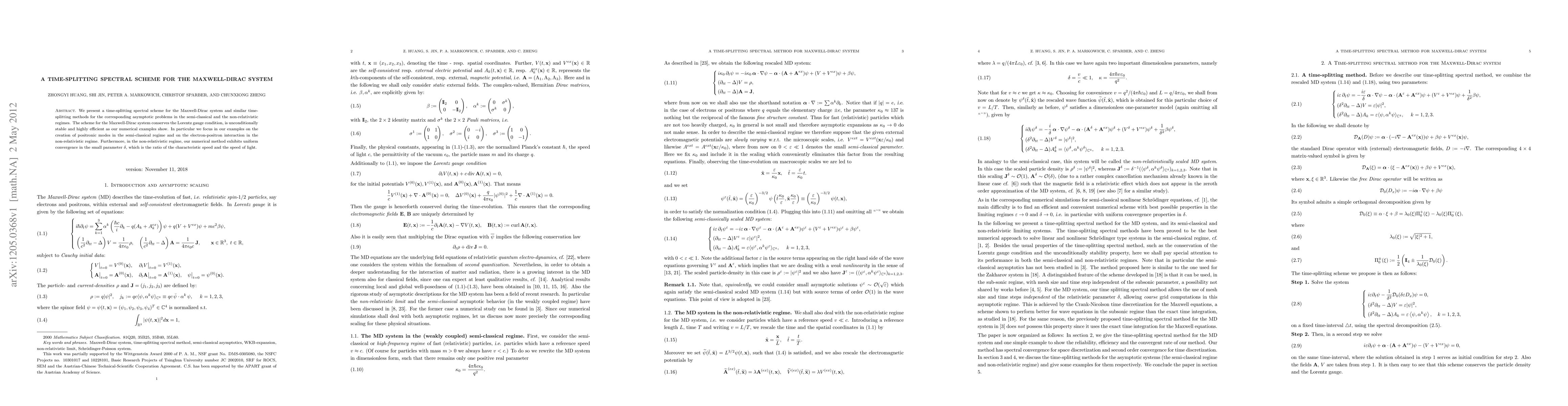 This paper introduces a time-splitting spectral scheme for solving the Maxwell-Dirac system, demonstrating its stability and efficiency. It also applies similar methods to semi-classical and non-relativistic regimes, showing uniform convergence in the non-relativistic case and focusing on positronic mode creation and electron-positron interactions.