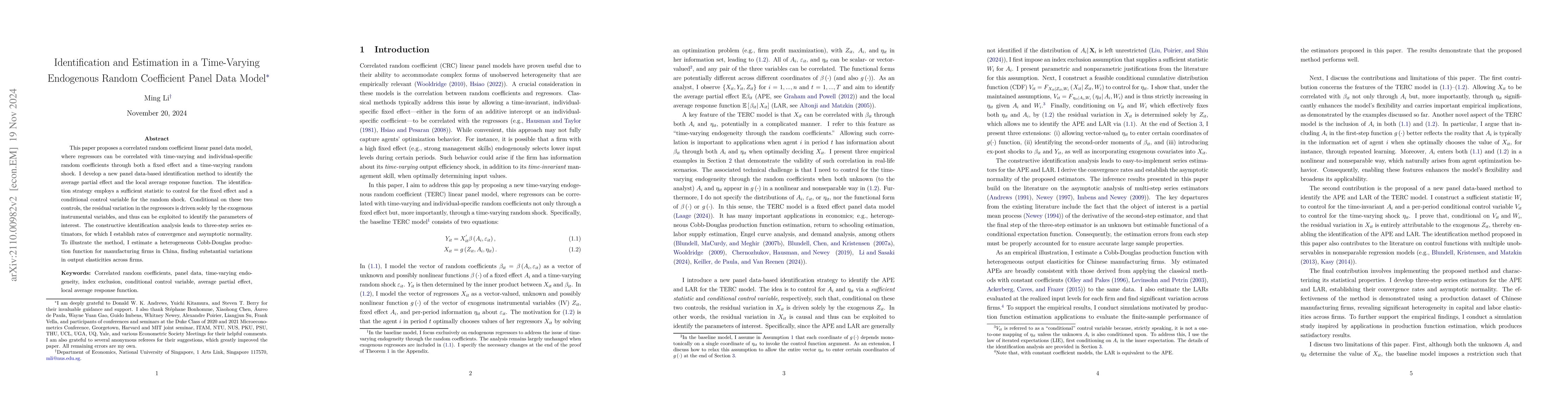 This paper introduces a time-varying endogenous random coefficient model to capture dynamic relationships in economic data, employing a three-step series estimator to identify moments of random coefficients. It applies the method to estimate production functions for Chinese manufacturing firms, demonstrating accurate estimation of output elasticities.