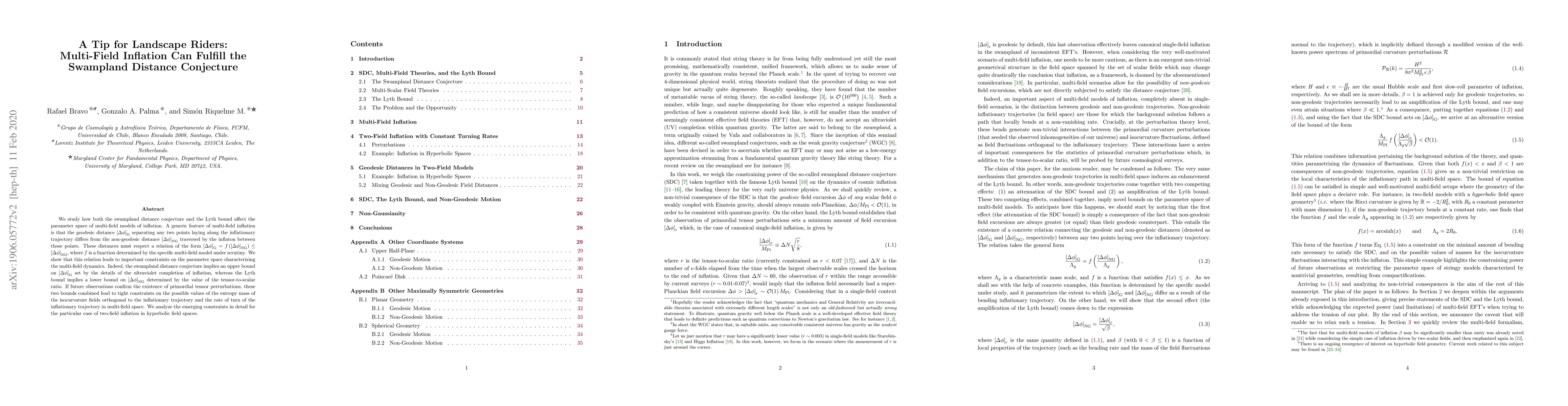 We study how both the swampland distance conjecture and the Lyth bound affect the parameter space of multi-field models of inflation. A generic feature of multi-field inflation is that the geodesic distance $\left[\Delta\phi\right]_\text{G}$ separating any two points laying along the inflationary trajectory differs from the non-geodesic distance $\left[\Delta\phi\right]_\text{NG}$ traversed by the inflaton between those points. These distances must respect a relation of the form $\left[\Delta\phi\right]_\text{G} = f\left(\left[\Delta\phi\right]_\text{NG}\right) \leq \left[\Delta\phi\right]_\text{NG}$, where $f$ is a function determined by the specific multi-field model under scrutiny. We show that this relation leads to important constraints on the parameter space characterizing the multi-field dynamics. Indeed, the swampland distance conjecture implies an upper bound on $\left[\Delta\phi\right]_\text{G}$ set by the details of the ultraviolet completion of inflation, whereas the Lyth bound implies a lower bound on $\left[\Delta\phi\right]_\text{NG}$ determined by the value of the tensor-to-scalar ratio. If future observations confirm the existence of primordial tensor perturbations, these two bounds combined lead to tight constraints on the possible values of the entropy mass of the isocurvature fields orthogonal to the inflationary trajectory and the rate of turn of the inflationary trajectory in multi-field space. We analyze the emerging constraints in detail for the particular case of two-field inflation in hyperbolic field spaces.