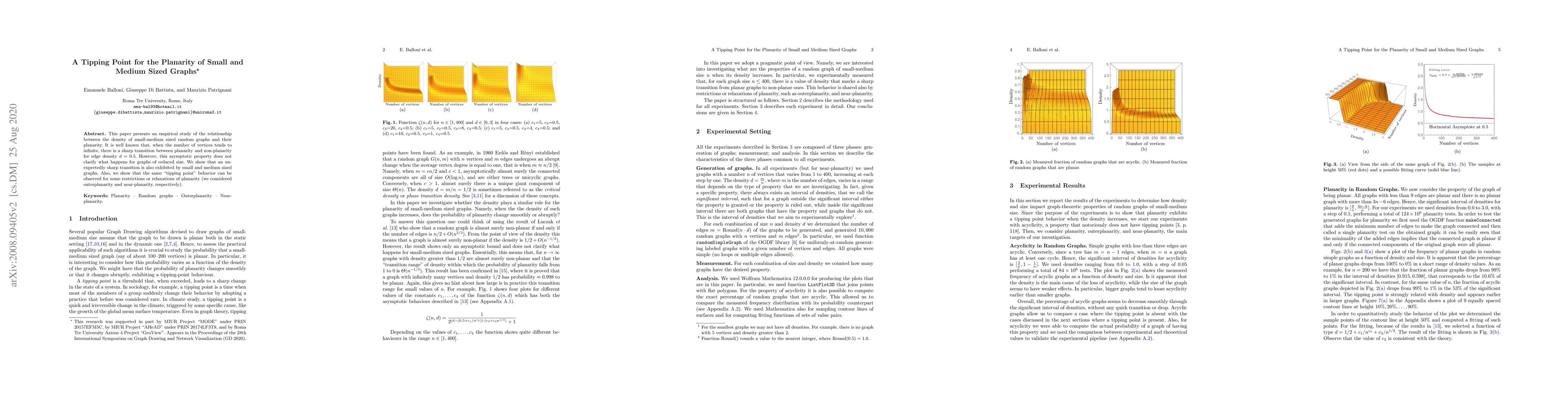 This paper presents an empirical study of the relationship between the density of small-medium sized random graphs and their planarity. It is well known that, when the number of vertices tends to infinite, there is a sharp transition between planarity and non-planarity for edge density d=0.5. However, this asymptotic property does not clarify what happens for graphs of reduced size. We show that an unexpectedly sharp transition is also exhibited by small and medium sized graphs. Also, we show that the same "tipping point" behavior can be observed for some restrictions or relaxations of planarity (we considered outerplanarity and near-planarity, respectively).