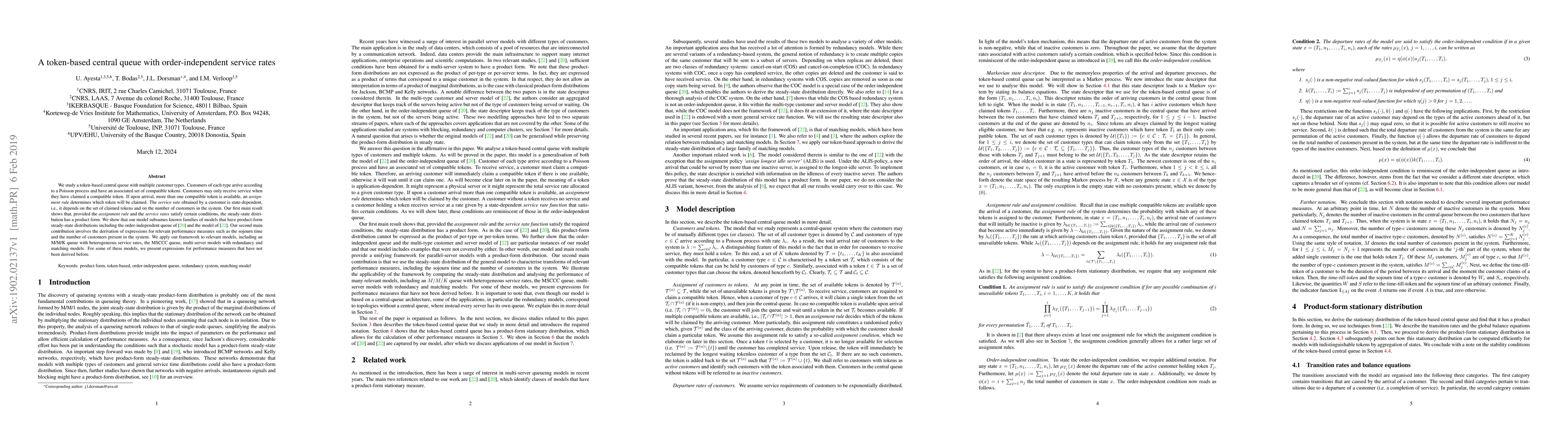 We study a token-based central queue with multiple customer types. Customers of each type arrive according to a Poisson process and have an associated set of compatible tokens. Customers may only receive service when they have claimed a compatible token. If upon arrival, more than one compatible token is available, an assignment rule determines which token will be claimed. The service rate obtained by a customer is state-dependent, i.e., it depends on the set of claimed tokens and on the number of customers in the system. Our first main result shows that, provided the assignment rule and the service rates satisfy certain conditions, the steady-state distribution has a product form. We show that our model subsumes known families of models that have product-form steady-state distributions including the order-independent queue of Krzesinski (2011) and the model of Visschers et al. (2012). Our second main contribution involves the derivation of expressions for relevant performance measures such as the sojourn time and the number of customers present in the system. We apply our framework to relevant models, including an M/M/K queue with heterogeneous service rates, the MSCCC queue, multi-server models with redundancy and matching models. For some of these models, we present expressions for performance measures that have not been derived before.