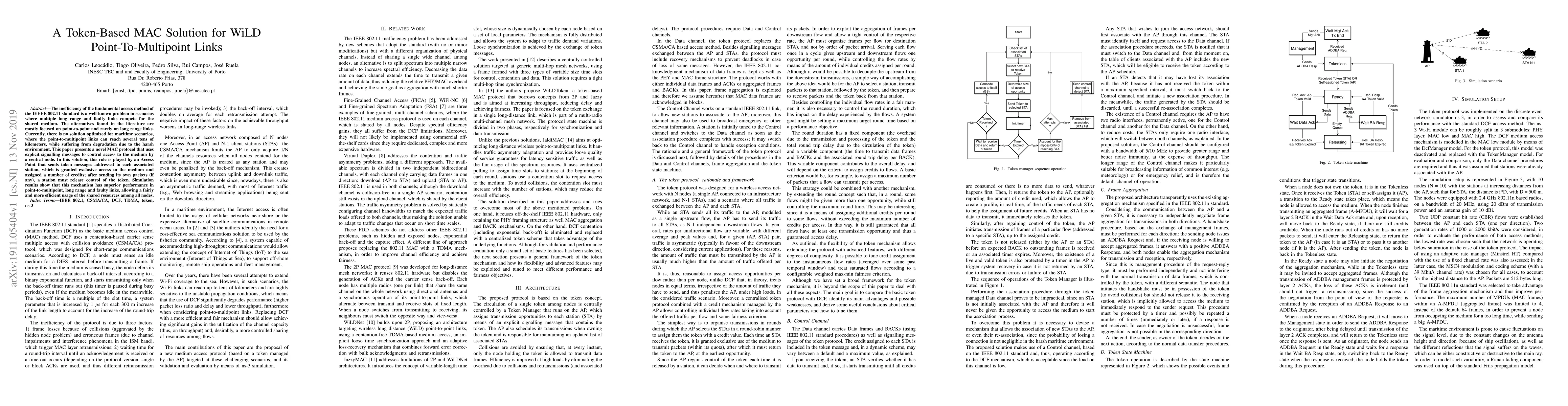 This paper proposes a novel token-based MAC protocol for WiLD point-to-multipoint links, addressing inefficiencies in IEEE 802.11's access method, especially in long-range and faulty maritime environments. The protocol uses an Access Point to distribute tokens granting exclusive medium access, improving resource utilization and fairness.